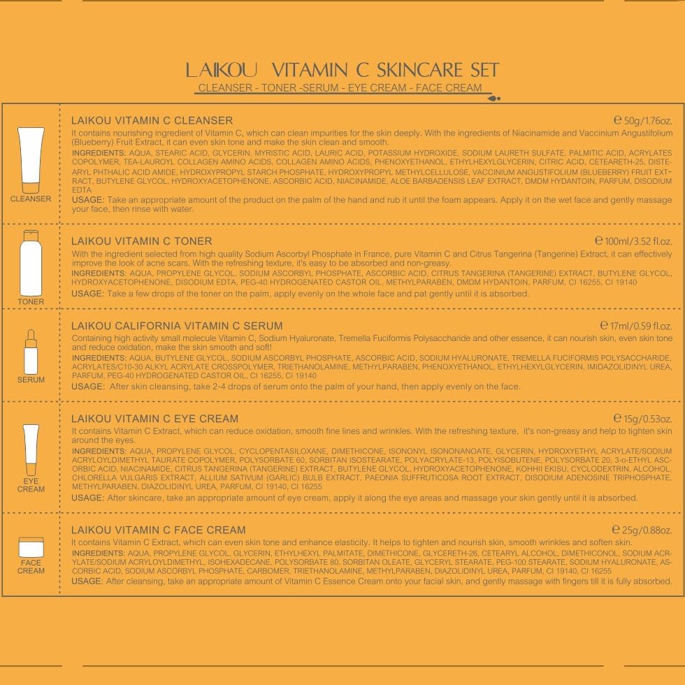 - đăSkin Care Routine Kită Vitamin c skincare set for teenage girls. The 5-piece skincare set meets your daily skincare needs and the travel skincare set is the perfect skincare companion for your travels. Elevate your skincare routine with this comprehensive moisturizing essentials: facial cleanser, face toner ,hydration face serum, face cream, and eye cream.