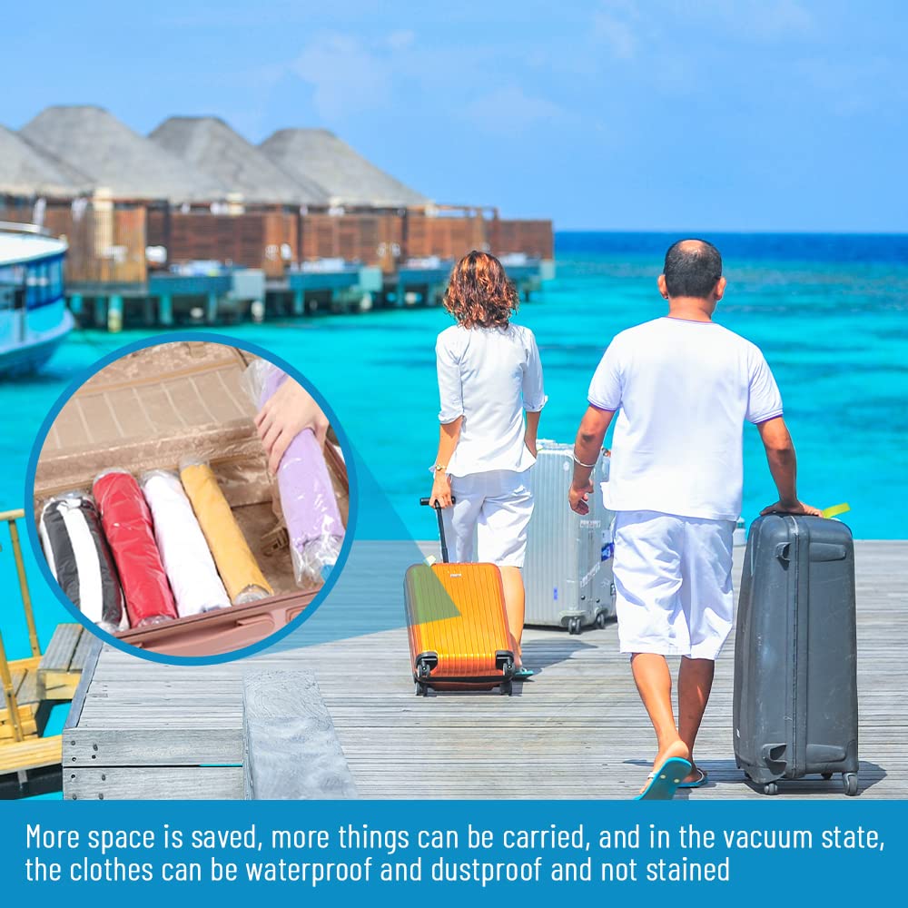 - 【Visible Transparent Bag】The vacuum travel storage bag is transparent, no extra printing to block the view, and the contents are clearly visible. It is convenient for you to quickly take the clothes you want without opening the bag to confirm