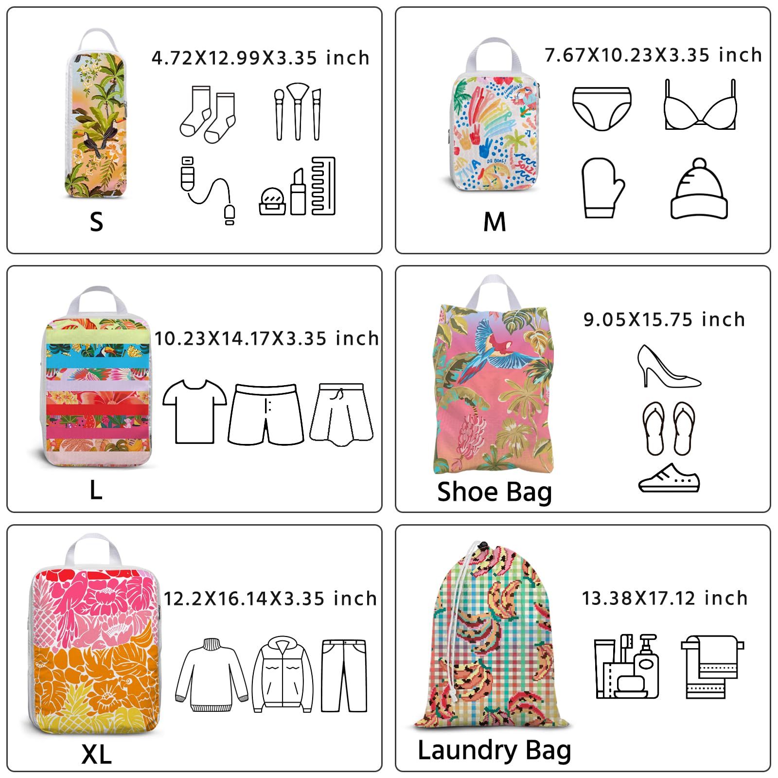 6 Pcs Compression Packing Cubes Waterproof Suitcase Travel Bag Luggage Backpack Organizer Travel Cubes for Packing-Tropical Banana