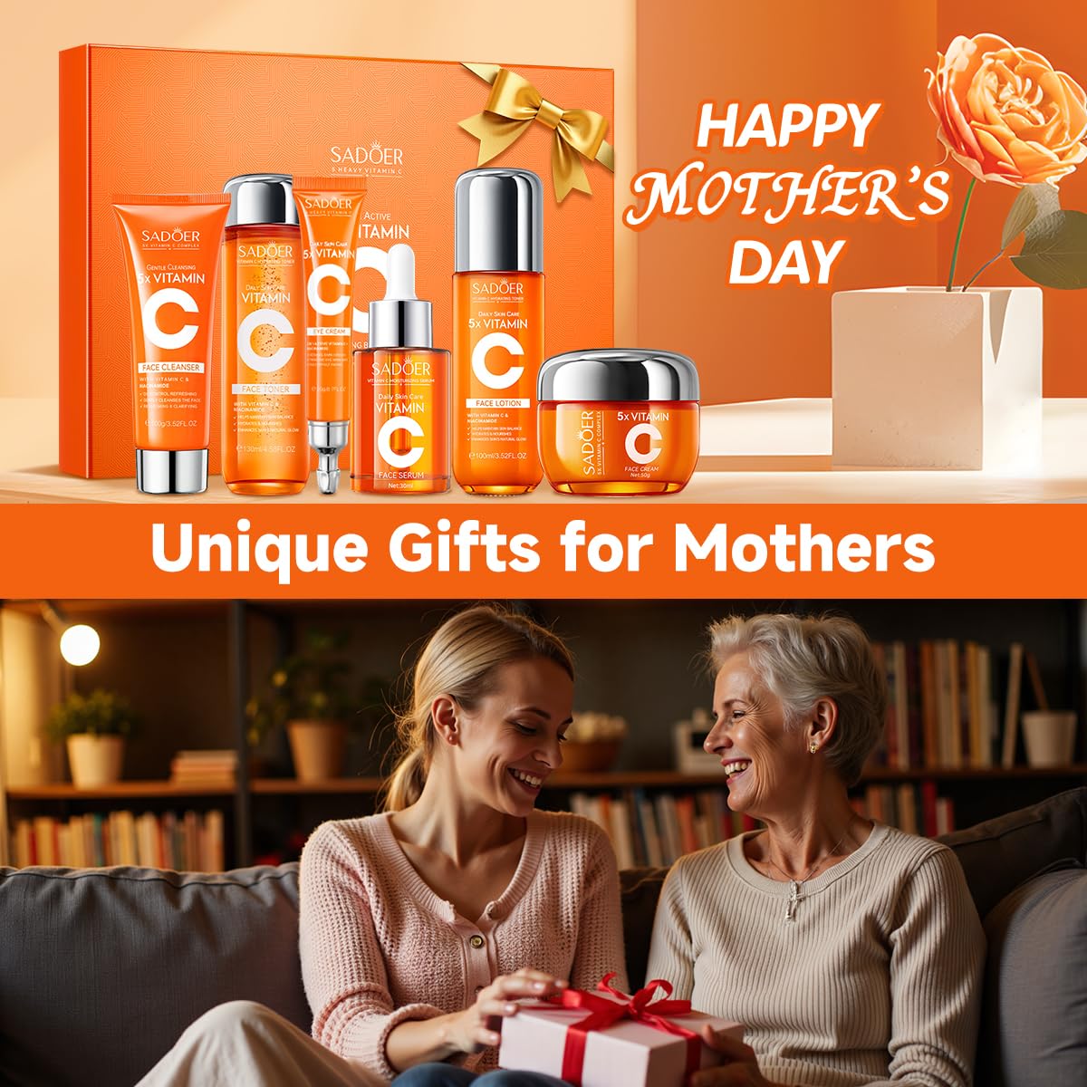 6-Piece Hydrating Skincare Set with Vitamin C & Niacinamide,Tk Face Care Kit Includes Toner, Serum,Cleanser,Moisturizer, Eye Cream & Body Lotion | Unique Gift for Women