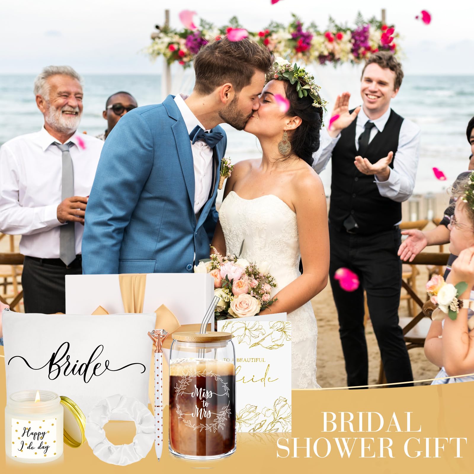 - Wedding Gifts for Bride: the package includes 1 pc of can shaped drinking glass with straw, 1 pc of bride makeup bag, 1 pc of crystal pen, 1 pc of scented candle, 1 pc of scrunchies, 1 pc of wedding card and 1 pc of gift box with raffia, the content is rich and varied, suitable for future bride, newly engaged best friend, bestie, best friend, sister, daughter, co worker or other brides