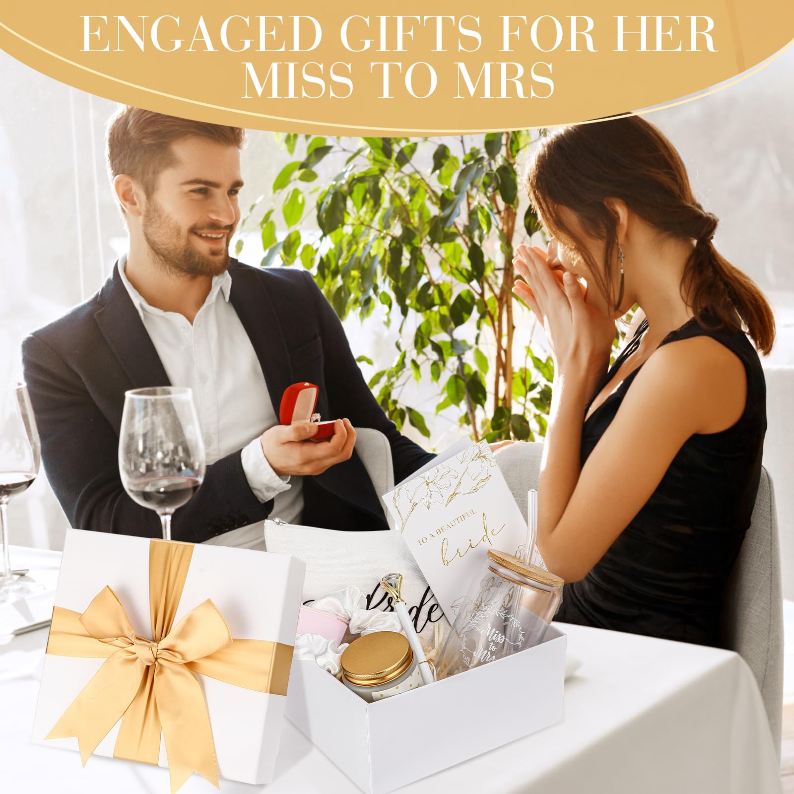 7 Pcs Bride Gifts Bridal Shower Gift Including Mrs Can Shaped Drinking Glass with Straw Bride Makeup Bag Crystal Pen Scented Candle Scrunchies Raffia Wedding Card Gift Box for Bridal Shower (White)