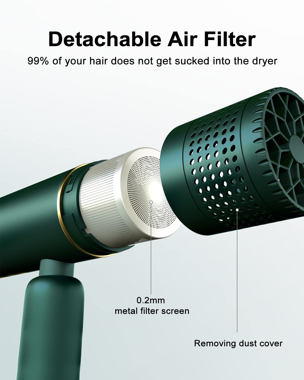 - Prevent 99% of the Hair from Being Inhaled - We have upgraded and improved the design of the hair dryer inlet, which can 99% prevent hair from being inhaled. As well as the addition of a removable double safety dust cover can prevent dust and particles from being sucked into the blow dryer. Additional small soft brush accessories, you can always clean the air inlet and dust cover to ensure wind power