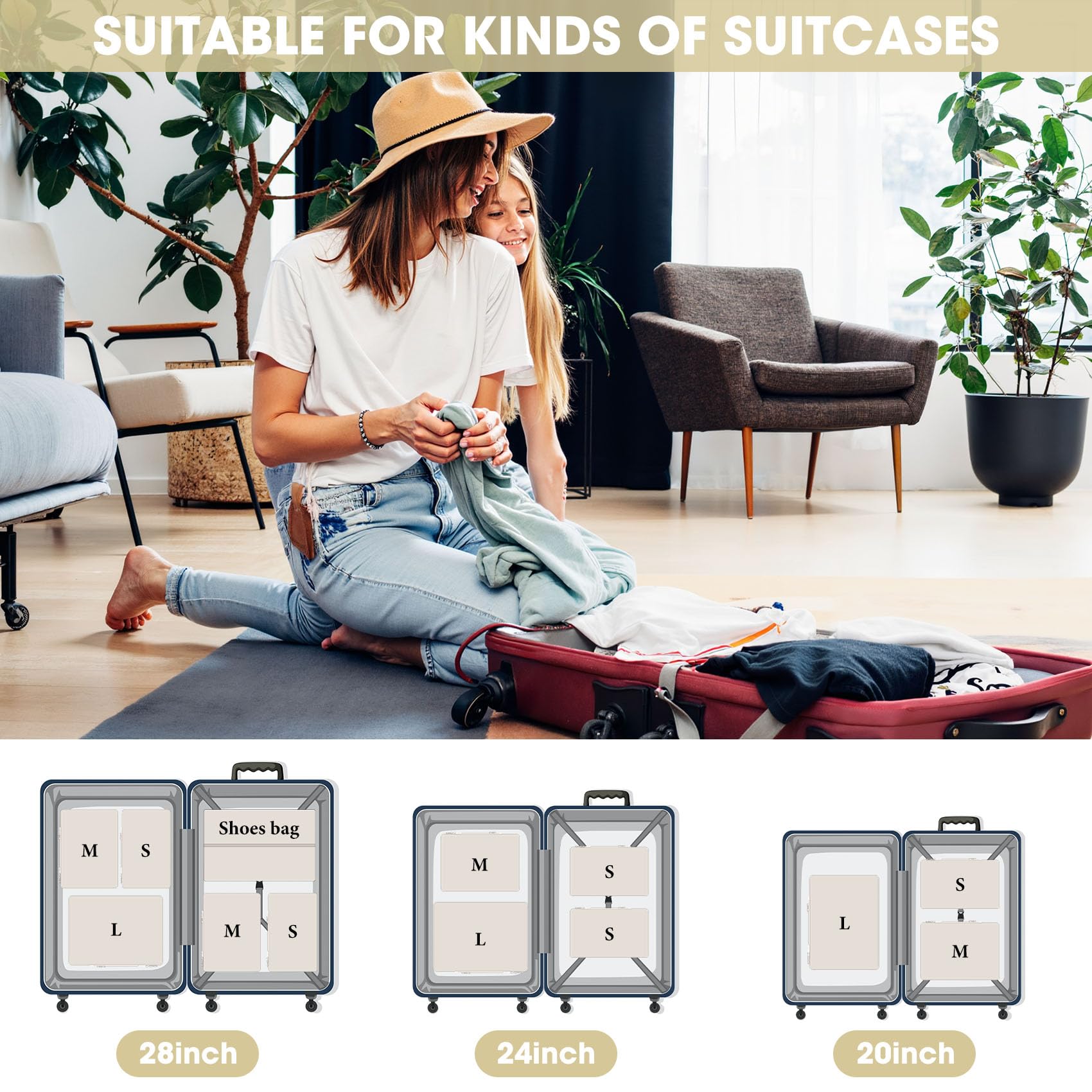 - Multifunctional Purpose Bag: Suitable for carry-on luggage, suitcases, backpacks. The compact and portable packing cubes compression suitcase organizer can play a role in business travel, camping adventures, vacations, and home storage. It can neatly place clothes and keep suitcases and wardrobes tidy