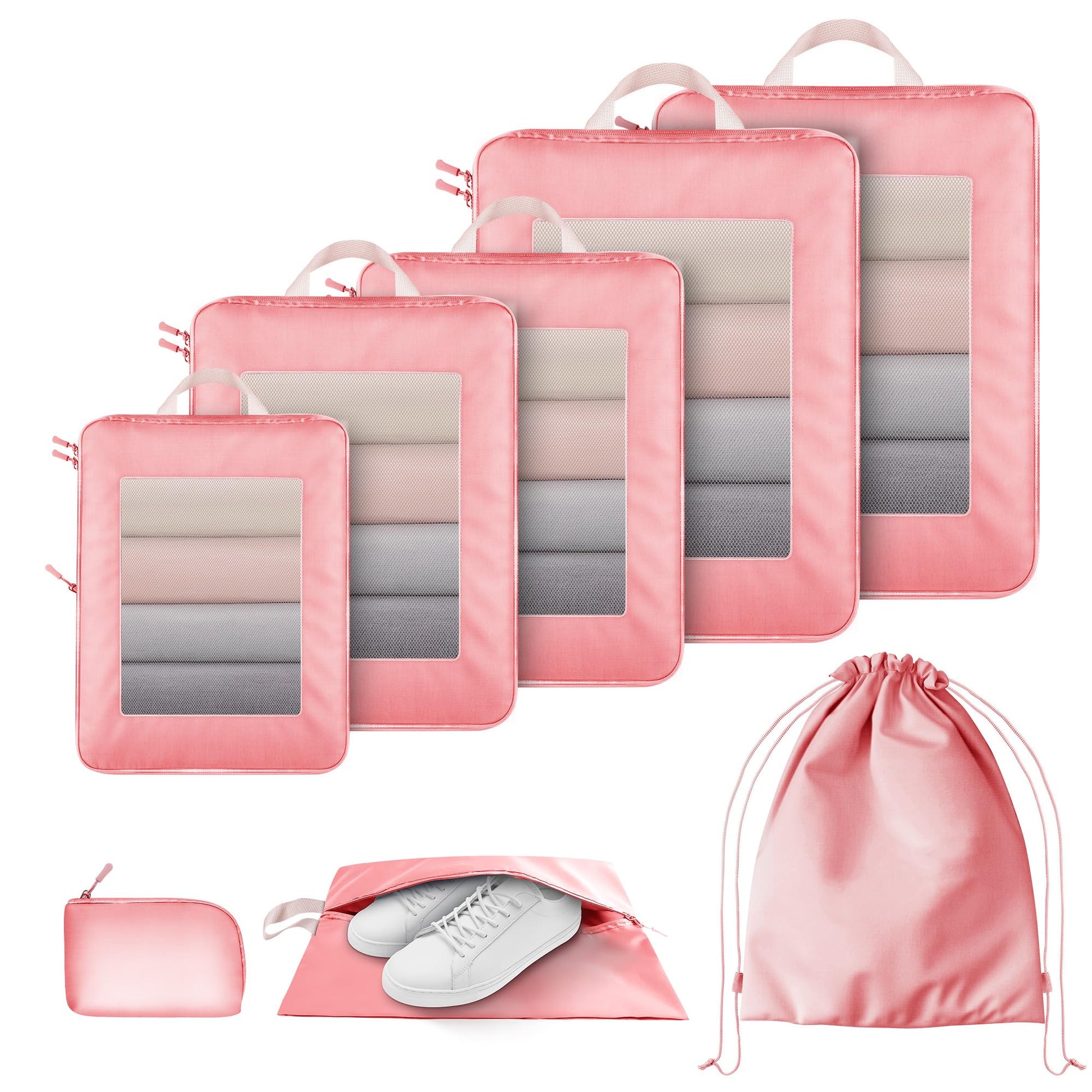 8 Set Compression Packing Cubes for Travel Suitcase Organizer Travel Essentials for Backpack Luggage Organizer Bags for Carry on (Pink)