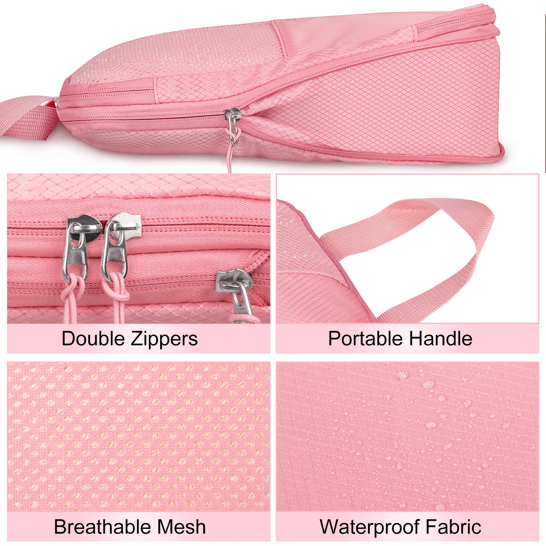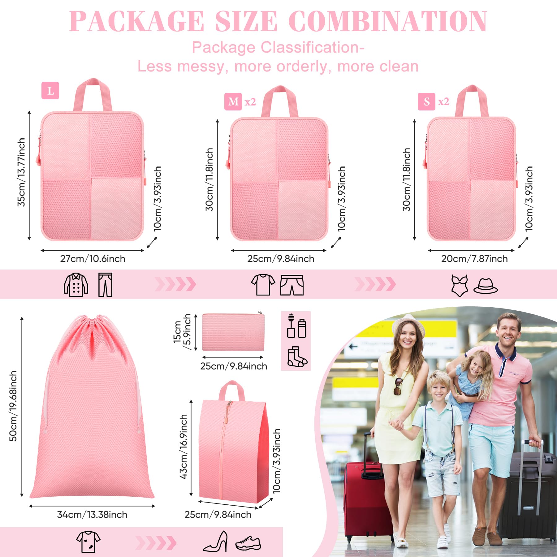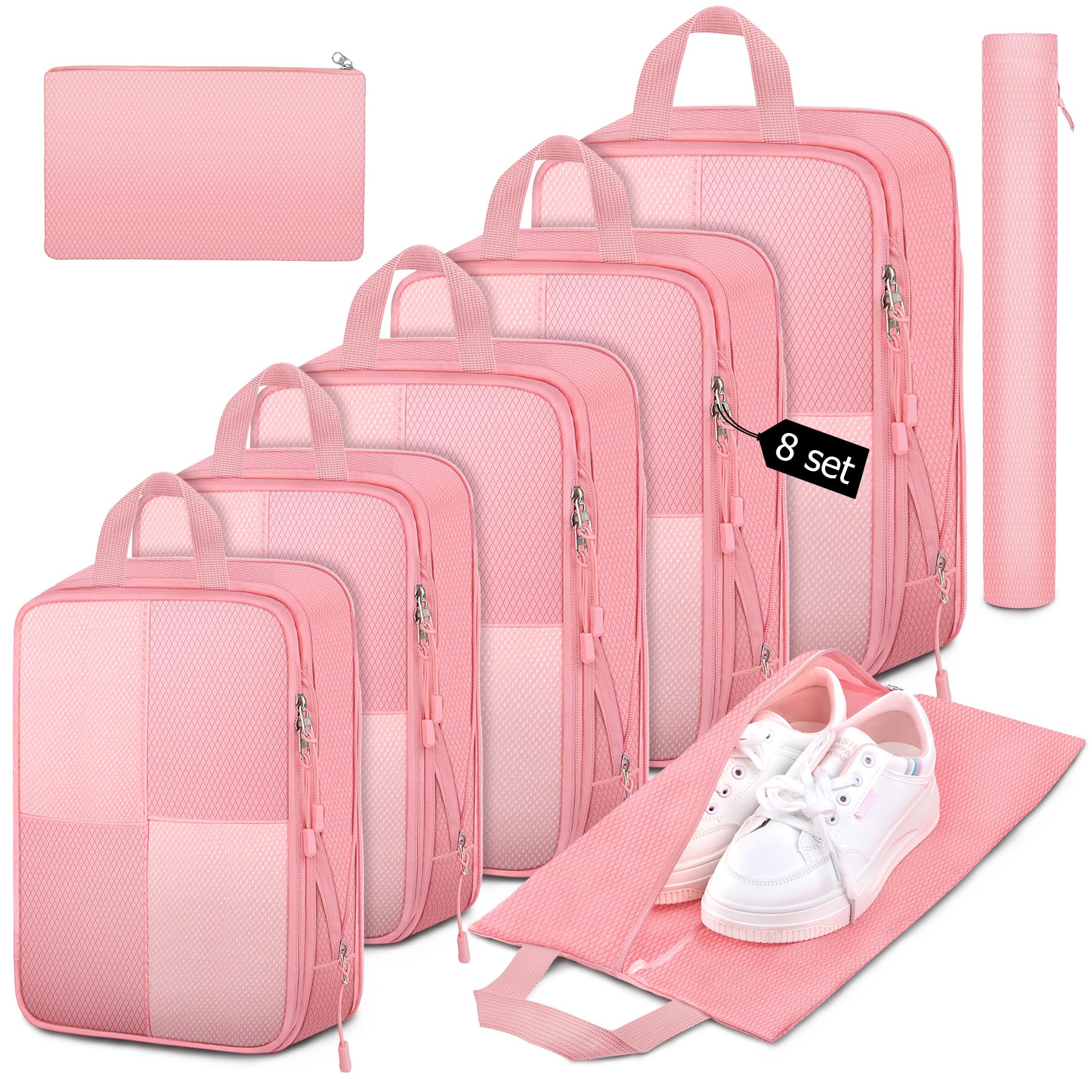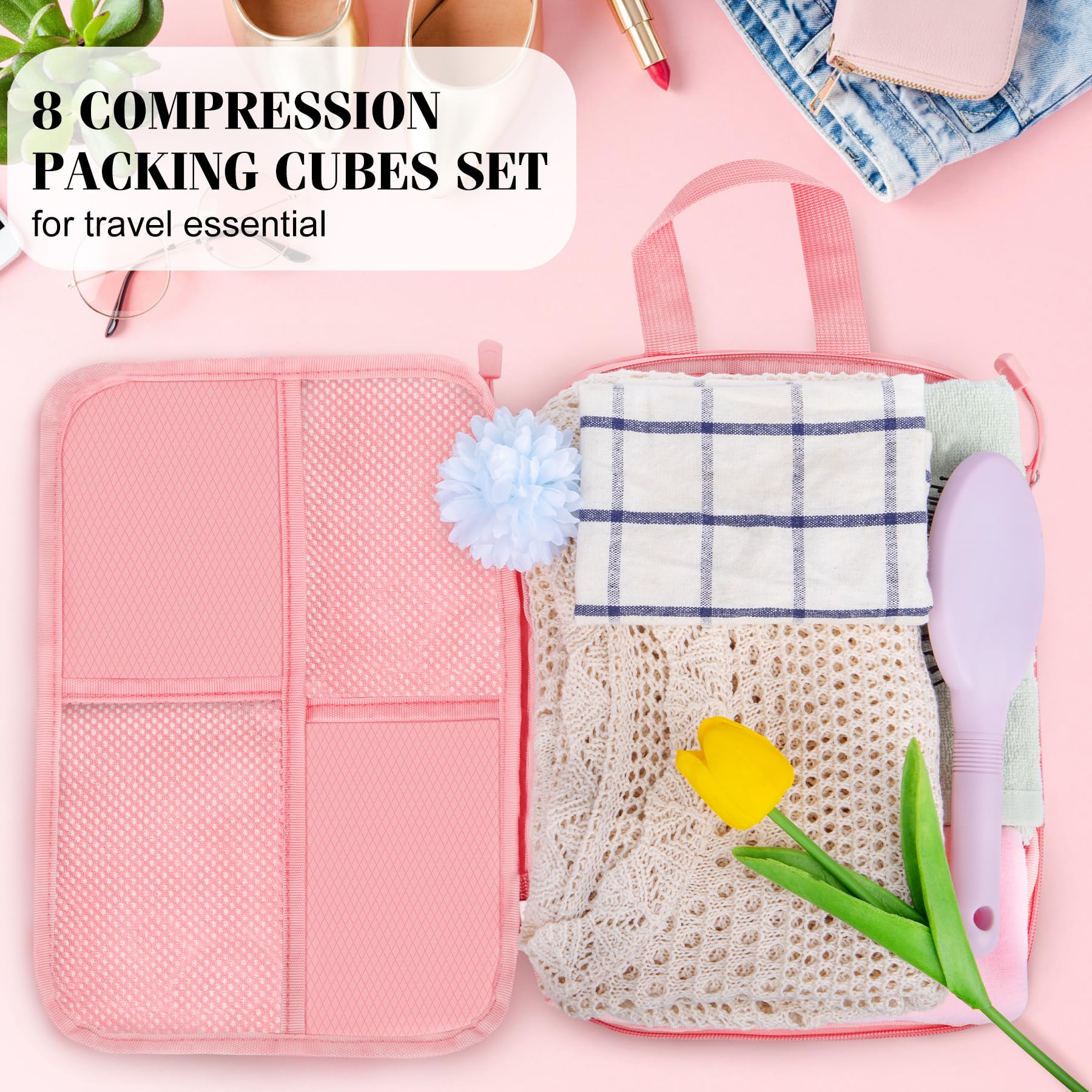8 Set Compression Packing Cubes Travel, Lightweight Expandable Travel Cubes Suitcase Organizer for Carry On Luggage Suitcase, Pink