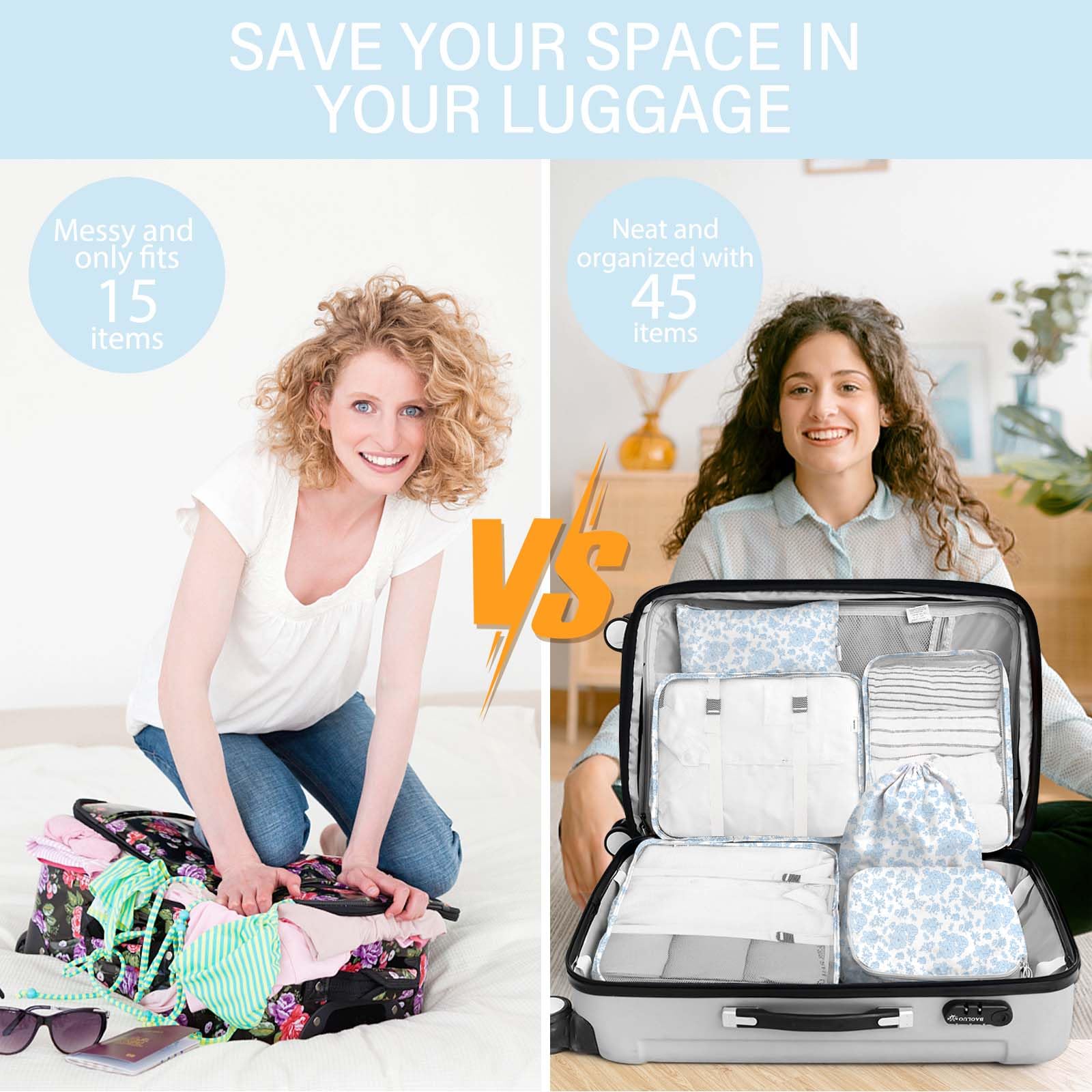 8 Set Packing Cubes for Travel, Luggage Packing Organizers Accessories Large Toiletries Bag for Clothes Shoes Cosmetics (Blue Flower)