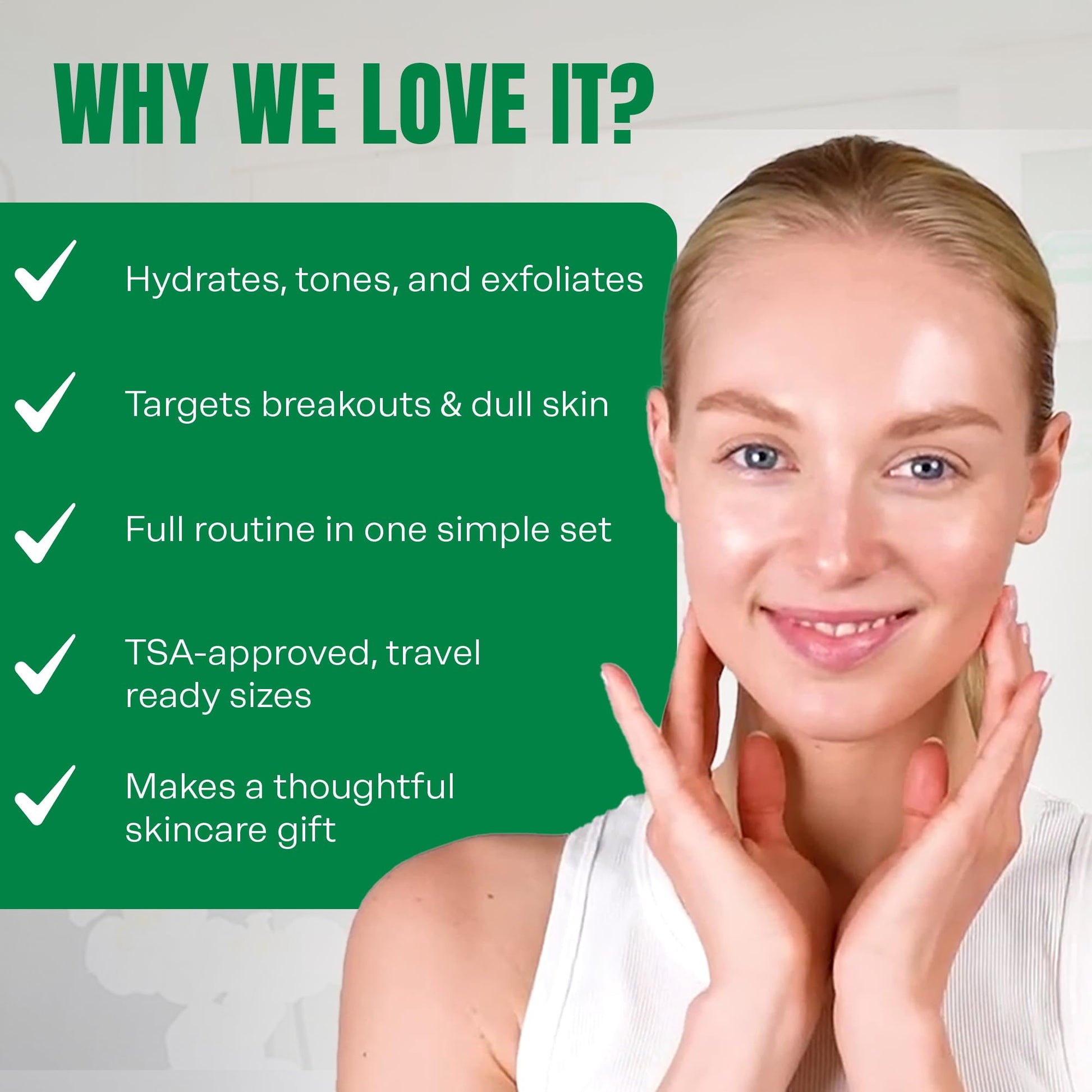 This set simplifies your skincare routine while delivering professional-grade results. Perfect for addressing multiple concerns – from blemishes and dullness to fine lines and dehydration – in one thoughtfully curated system. Makes an excellent gift for skincare enthusiasts, teens, or travelers seeking radiant skin anywhere.