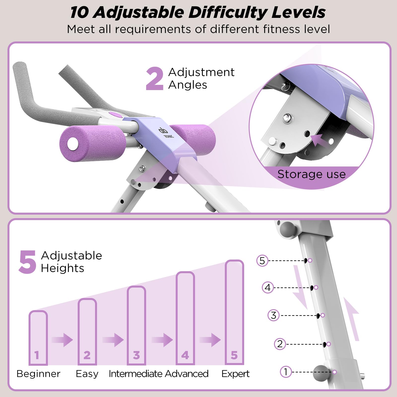 - Multiple Fitness Levels: This adjustable ab trainer machine features 2 incline settings and 5 height adjustments, allowing you to customize your workout intensity. Suitable for all fitness levels—from beginners to experts—users can easily tailor exercise intensity to effectively target desired muscle groups based on their physical capabilities