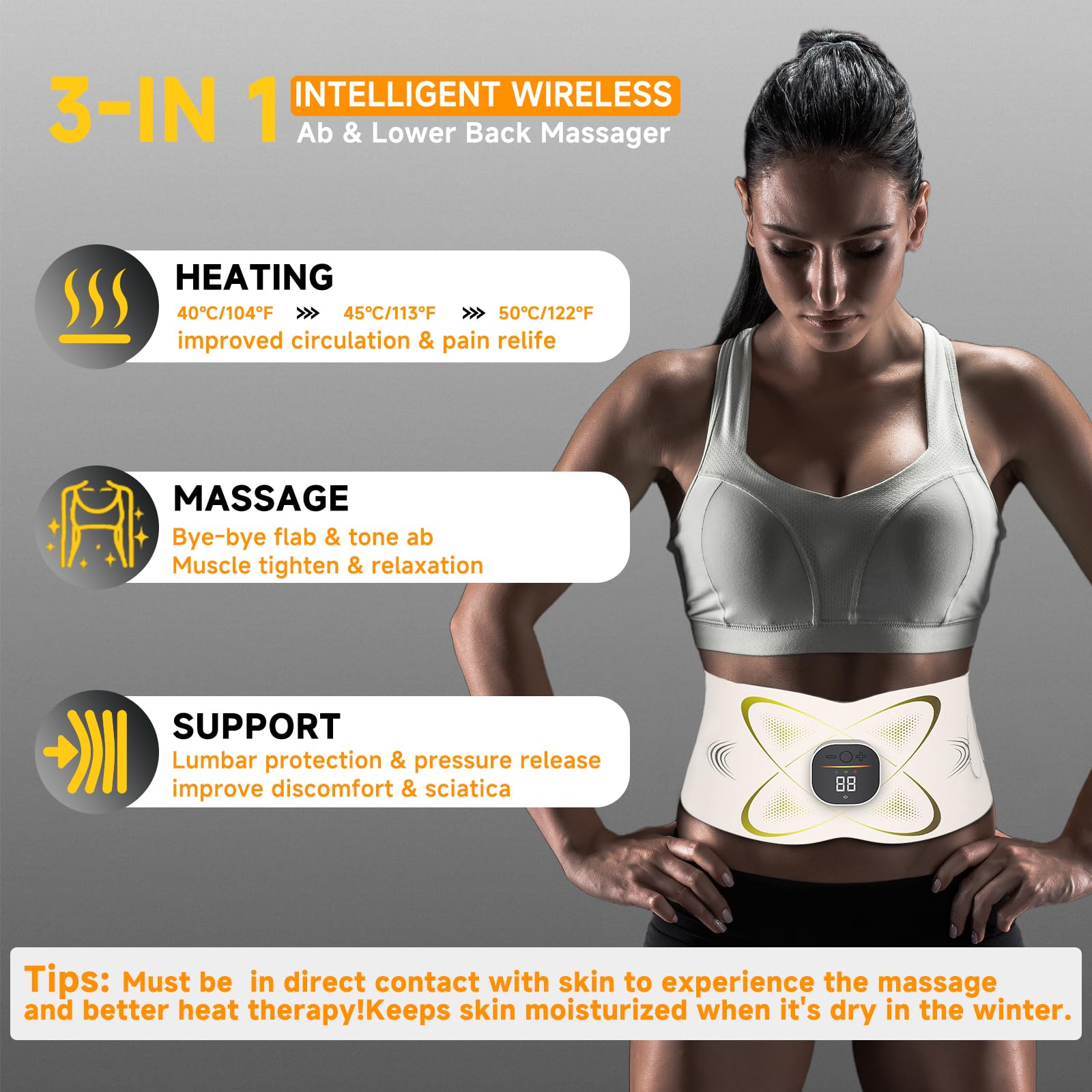 Abs Stimulator Abdominal, ab Belt Muscle Stimulator with Heat for Belly Fat Loss, Stomach Cellulite Melting, Postpartum Care Smooth & Firming, Lower Back Massager for Pain Relief Women Men Gifts