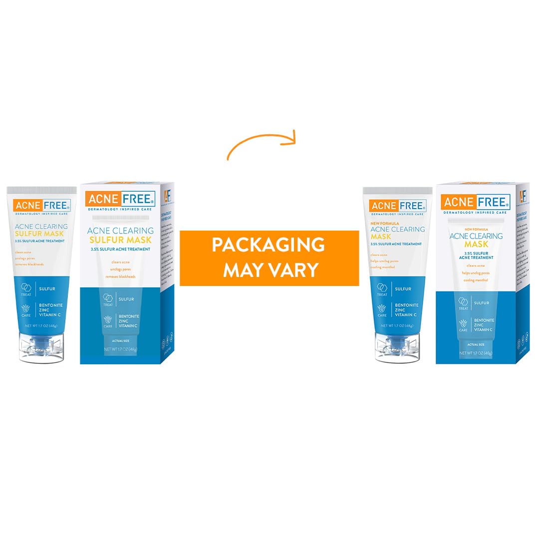 AcneFree Acne Clearing Mask, 3.5% Sulfur Acne Treatment, Absorbs Excess Oil and Unclogs Pores with Vitamin C, Bentonite, and Zinc, 1.7 Ounce