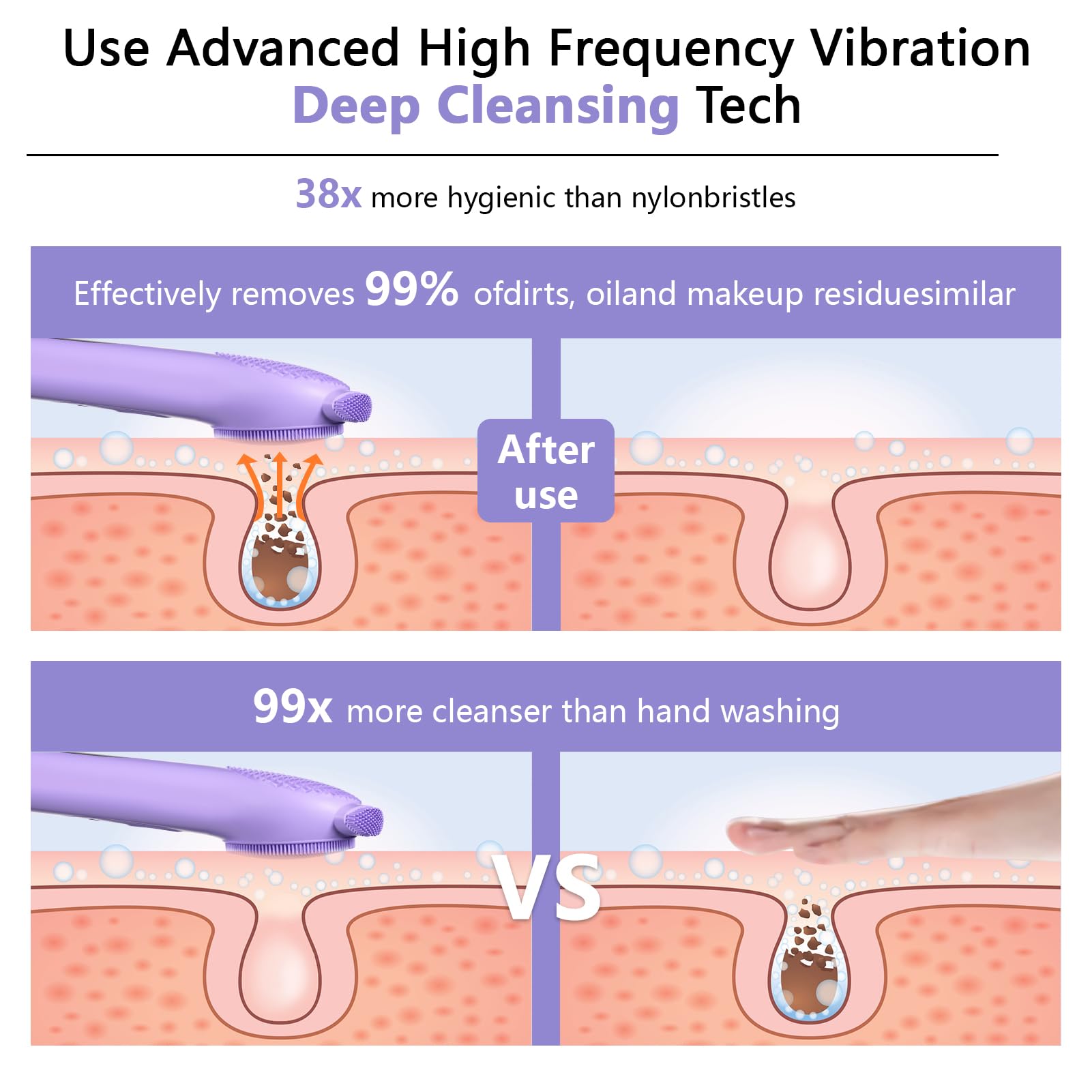 - 【IPX7 Waterproof, Long-Lasting Durability】Our face scrubber for women has IPX7 fully waterproof function, allowing for easy and safe use during showers. Note after recharge please seal well the silicone cap afterwards.In addition, we offer a year “replace " and provide online customer support.
