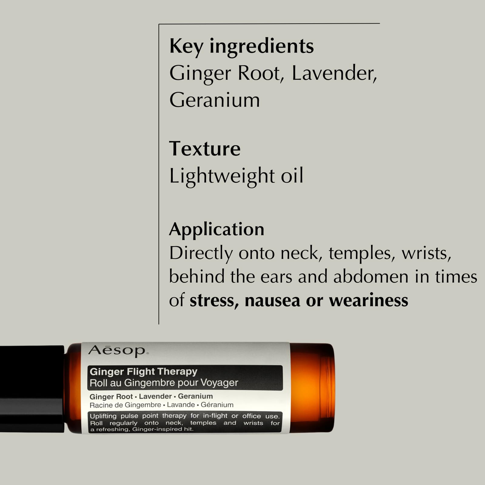 Aesop Ginger Flight Therapy | Aromatic Anti-Nausea, Calming Pulse-Point Roll-On with Ginger and Lavender Oil | For Travel or Daily Use | 0.3 fl oz