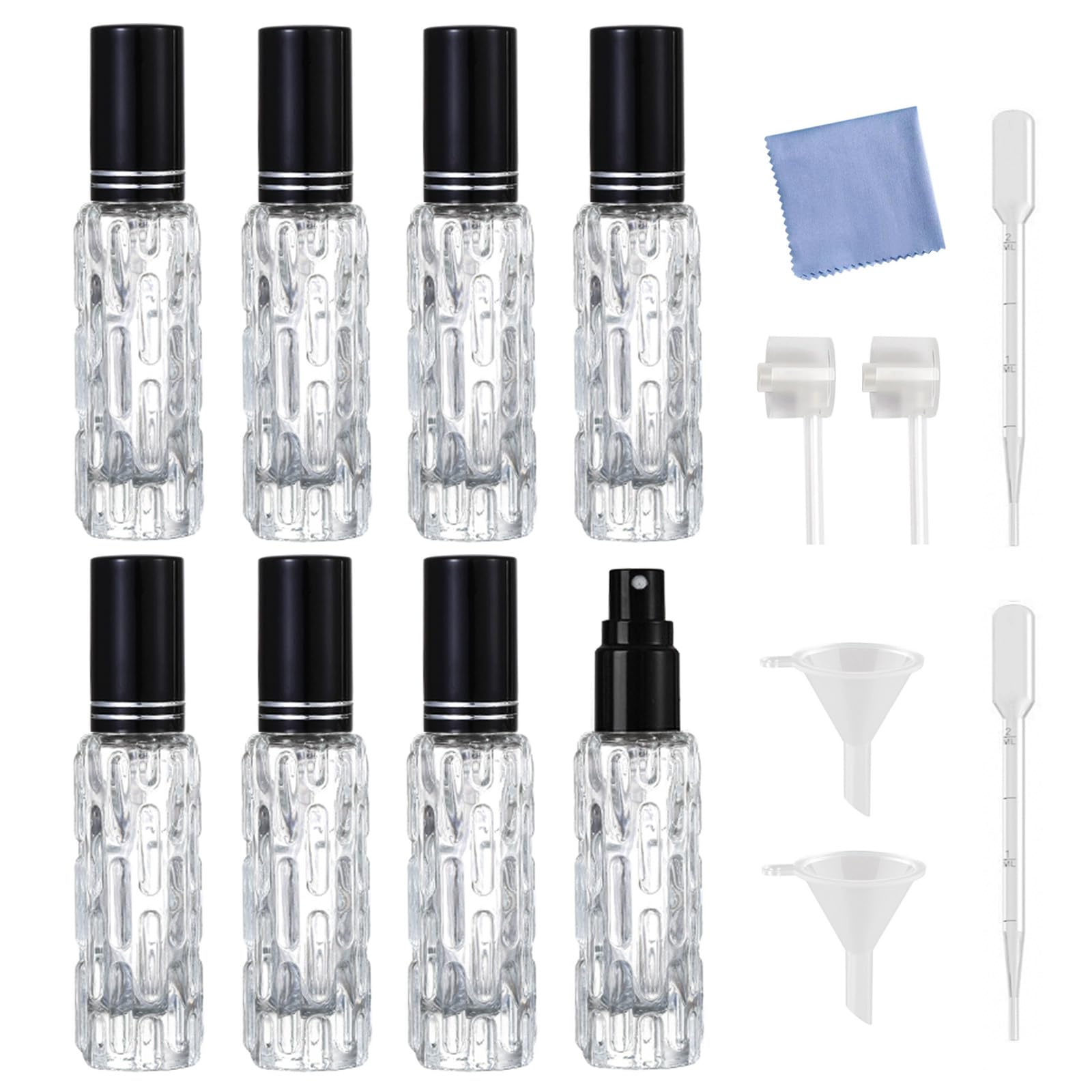 Details: It is a high-quality glass spray bottle. The glass is thick and durable. The spray is delicate, compact and light. It can be safely put into backpacks and cosmetic bags. It does not occupy space and is easy to carry. It is very suitable for putting your favorite perfume/makeup remover/toner/makeup remover into containers. They are ideal gifts for family and friends who like handmade DYI perfume. Specifications: Material: Glass Bottle color: transparent Bottle capacity: 15ml This package includes: 8 transparent glass bottles 2 plastic dispensers, 2 plastic straws, and 1 dust cloth.  Note: -The dimensions are measured manually, please allow for slight errors. -Due to the color setting of your monitor, the color may differ slightly from the online image. Please refer to the actual product. Thank you for your understanding