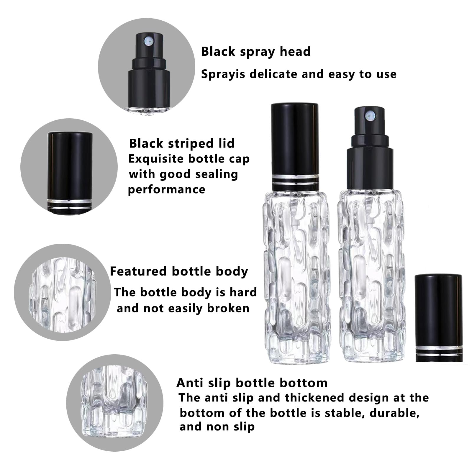 - High quality materials: This perfume spray bottle is made of high impact glass, and the body and bottom of the bottle are thickened, durable, with dispenser pump delivery tools for easy refilling and dispensing.