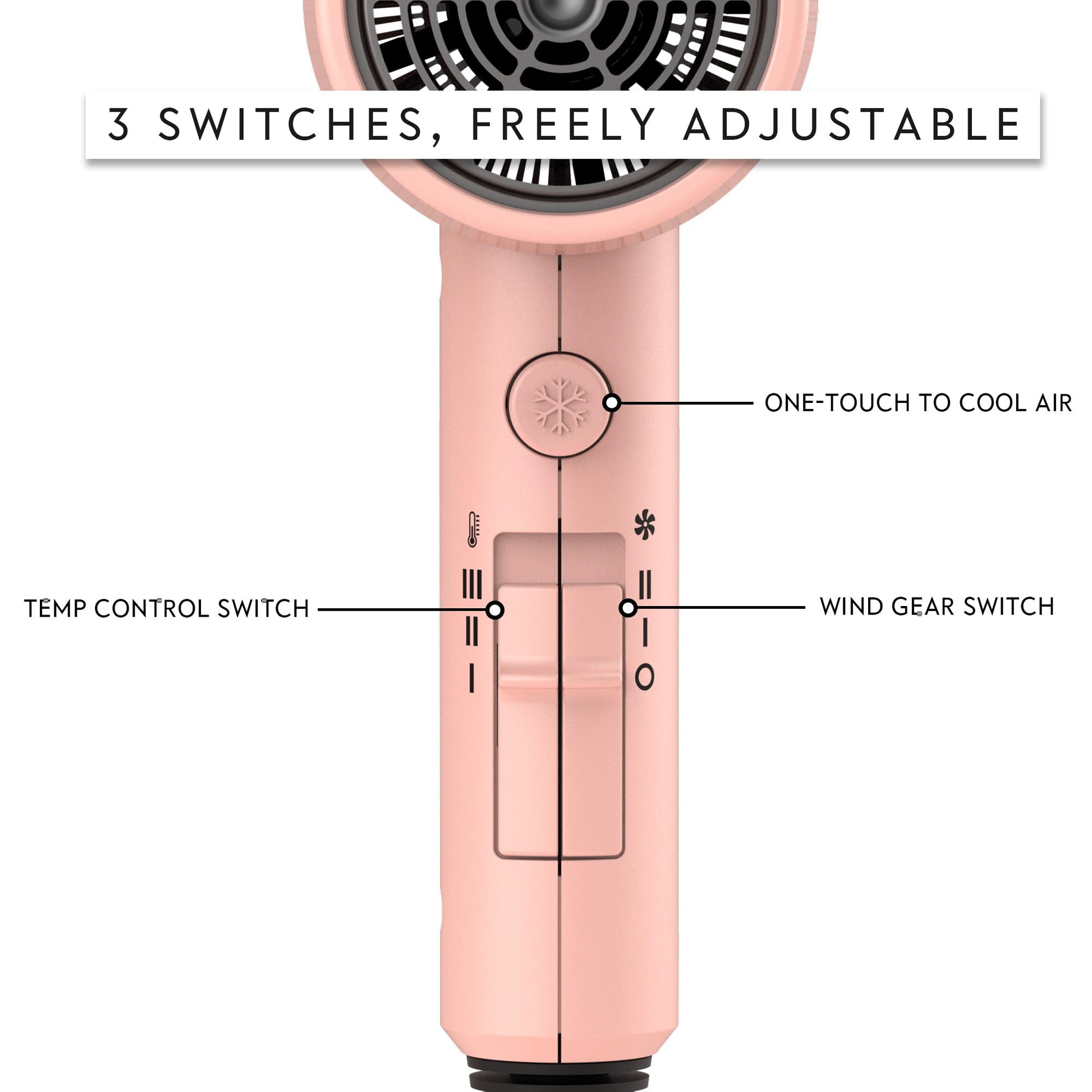 AINA Hair Dryer with Diffuser, Blow Dryer for Women | Advanced Ionic Technology, Ceramic Coating | Cold Shot Features Turbo Heat for Fast Drying and Shine 110V/ALCI (Babe Pink)