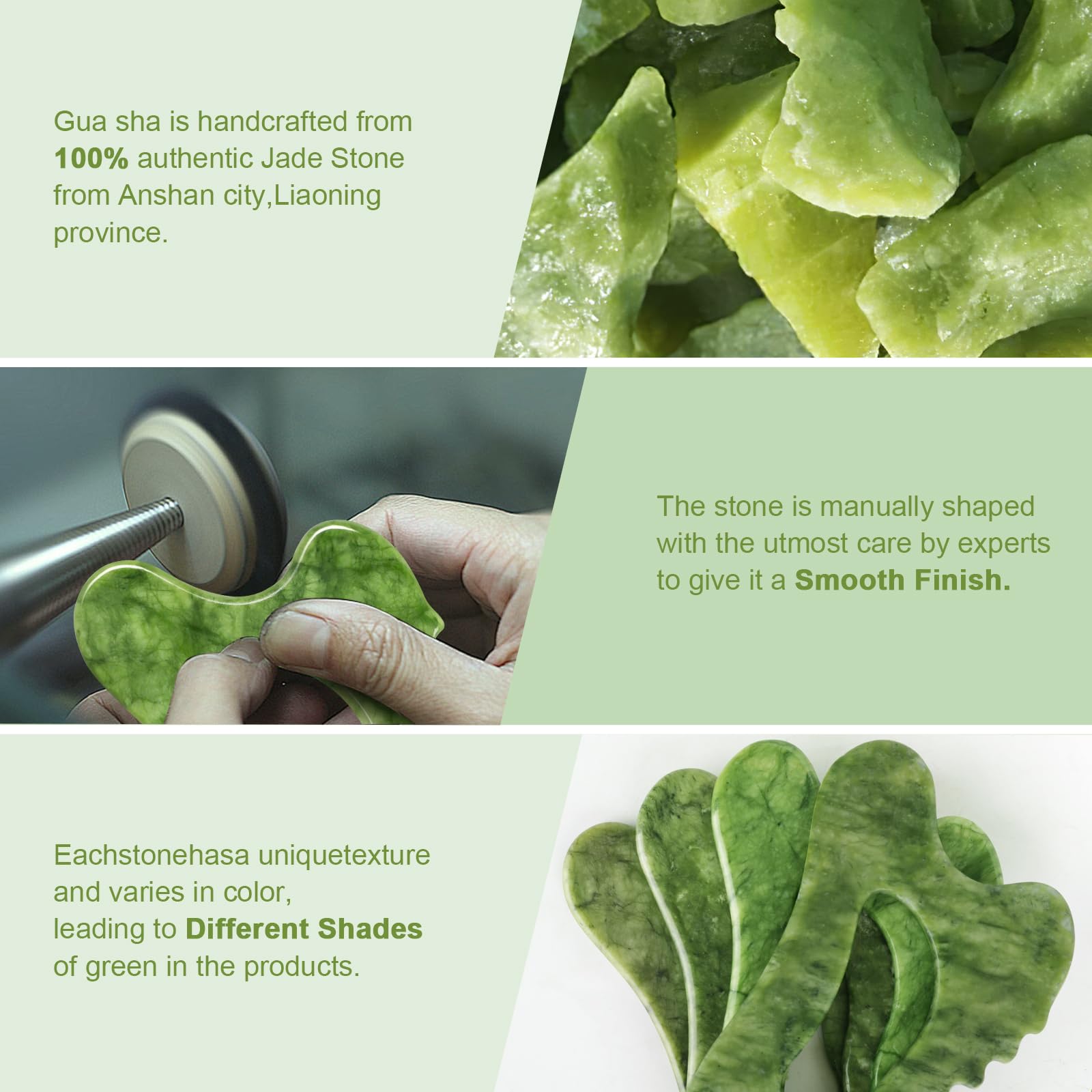 - 【Natural Jade Stone & Eco-Friendly】This large guasha tool set is handcrafted from 100% authentic jade gua sha stone sourced from Anshan City, Liaoning Province. The jade stone is known for promoting balance and positive energy, which may enhance your skin's vitality
