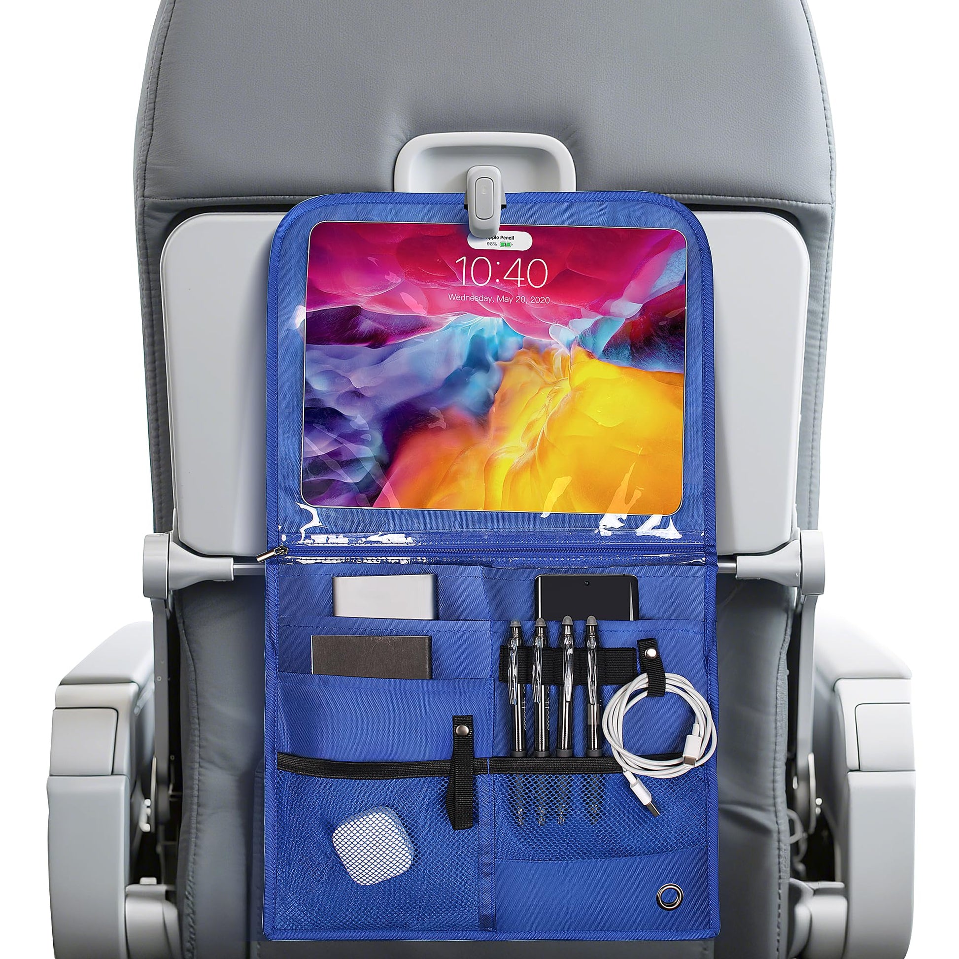 Airplane Pocket Organizer with Tray Table Cover,Portable In Flight Seat Back Organizer & Storage Bag, Commuter Essential Travel Bag Travel Accessories for Flying,Blue (Blue)