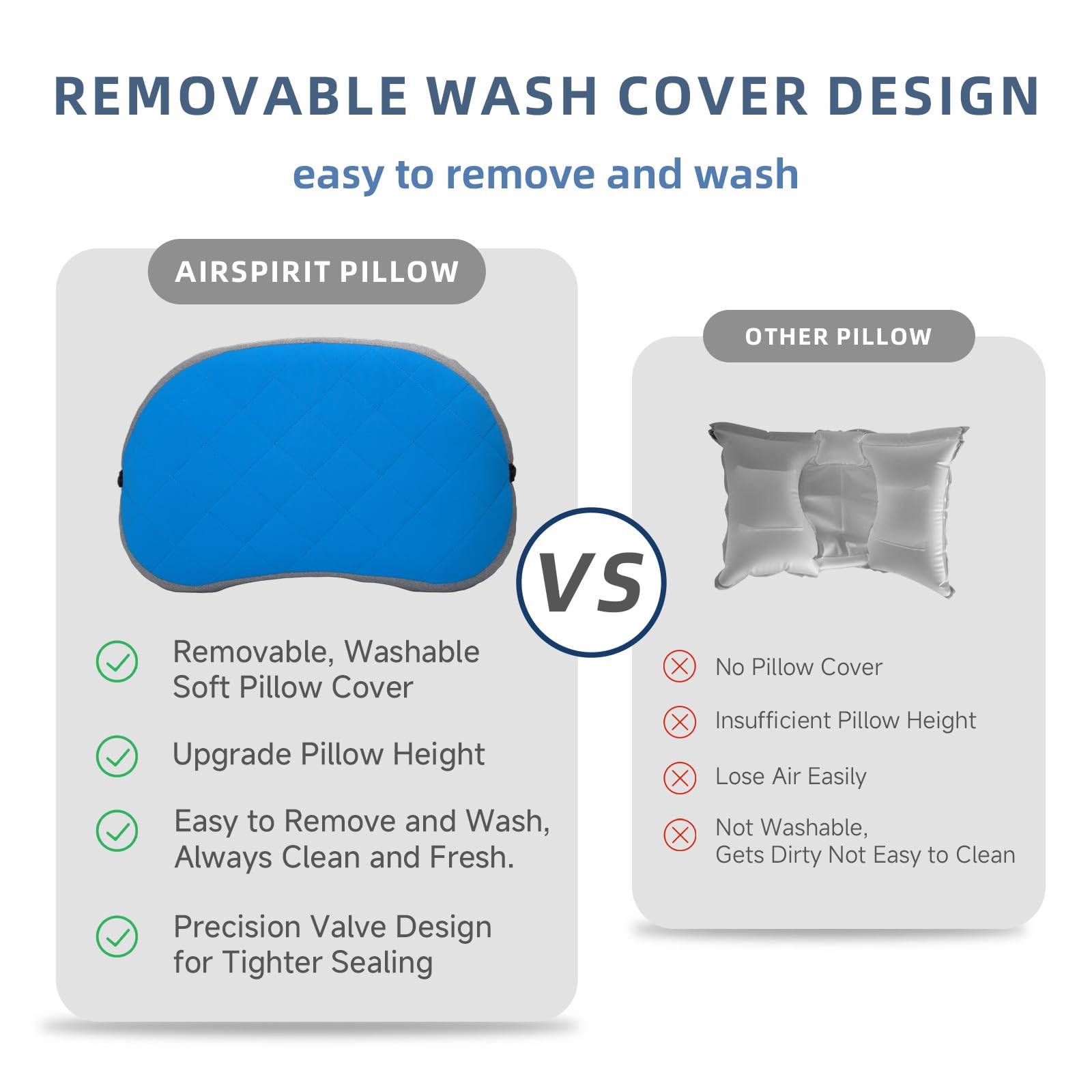 - 【BREATHABLE AIRFLOW FABRIC & WASHABLE COVER】Hypoallergenic inflatable pillow case with sweat-wicking cotton exterior + noise-free polyester inner. Removable for machine wash (ideal for camping air pillow).