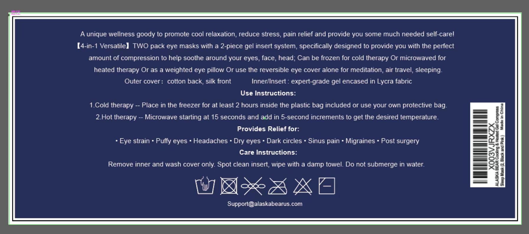 - Cool sensation, Versatile design -- Two pack eye masks with a 2-piece gel insert system, can be frozen for cold therapy Or microwaved for warm therapy Or as a weighted pillow Or use the reversible eye cover alone for meditation, air travel, sleeping