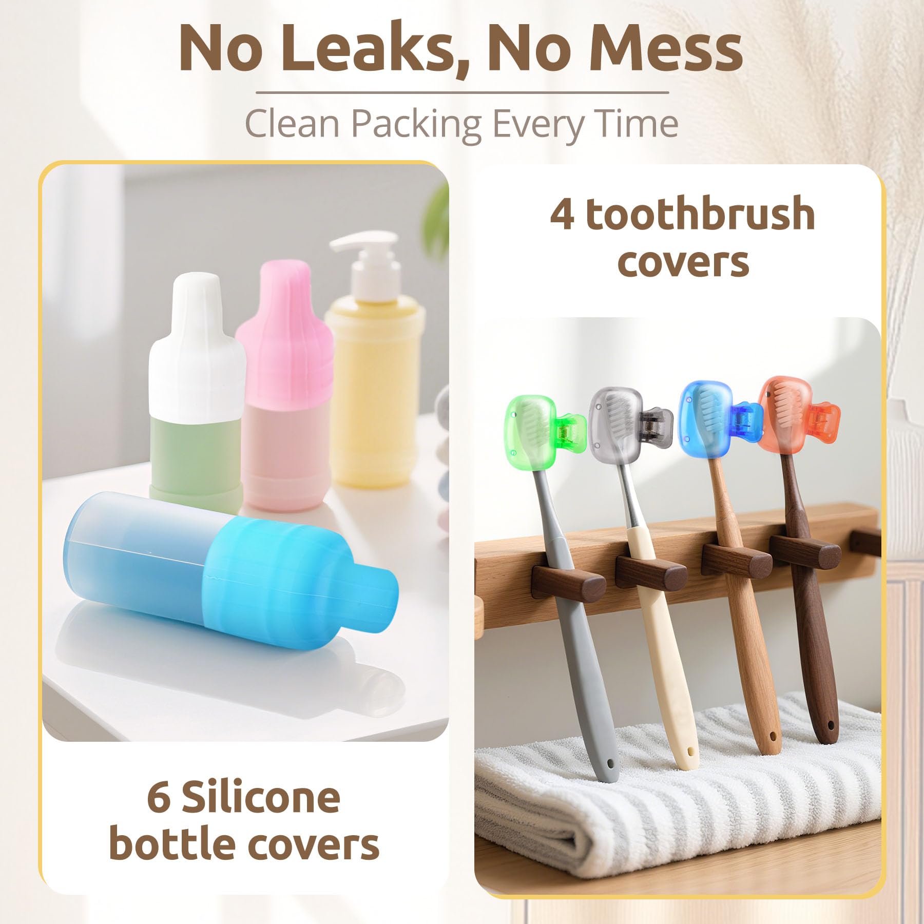 - Clean stays clean—everywhere: No leaks, no mix-ups—silicone covers seal your liquids, toothbrushes stay separate, and dirty shoes stay in their own bag. Travel isn’t just about the destination—it’s about staying clean and at ease along the way