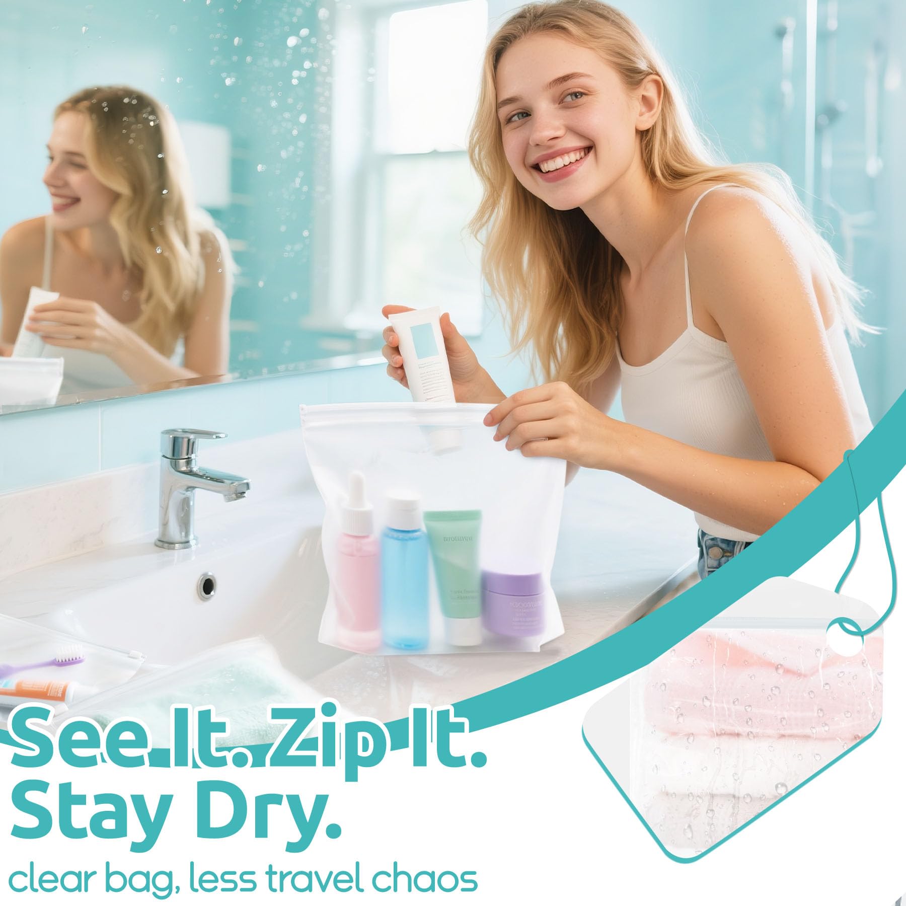 - No Spills, No Mess: Skincare stays put, wet towels don’t touch your clothes. 3 clear waterproof bags make every morning and night on the road hassle-free