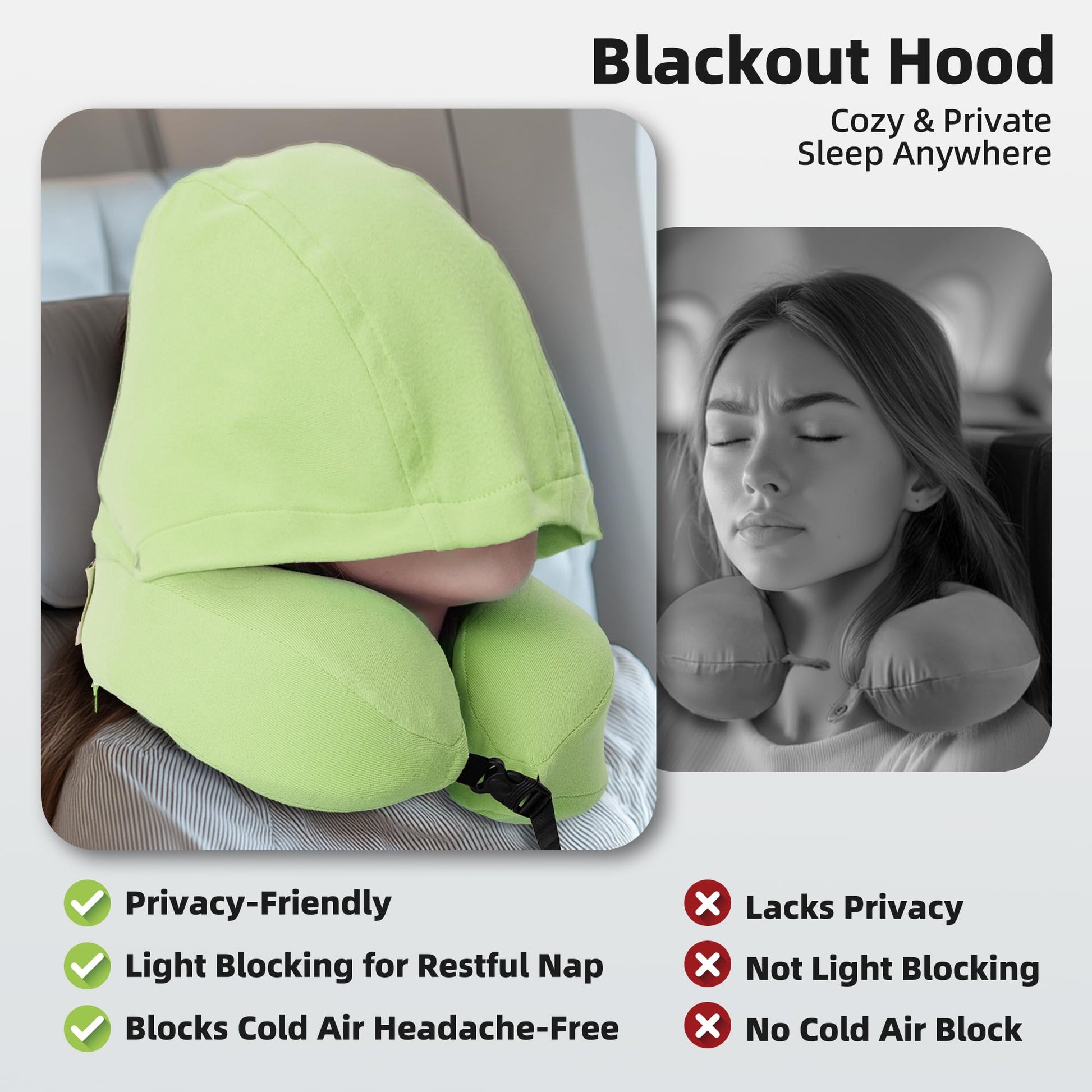 ALLINCOZY Privacy-Friendly Hooded Travel Pillow for Kids & Adults, Sensory-Friendly, Memory Foam Neck Support for Airplane, Car & Train, Breathable Fabric, Portable, Ultimate Comfort