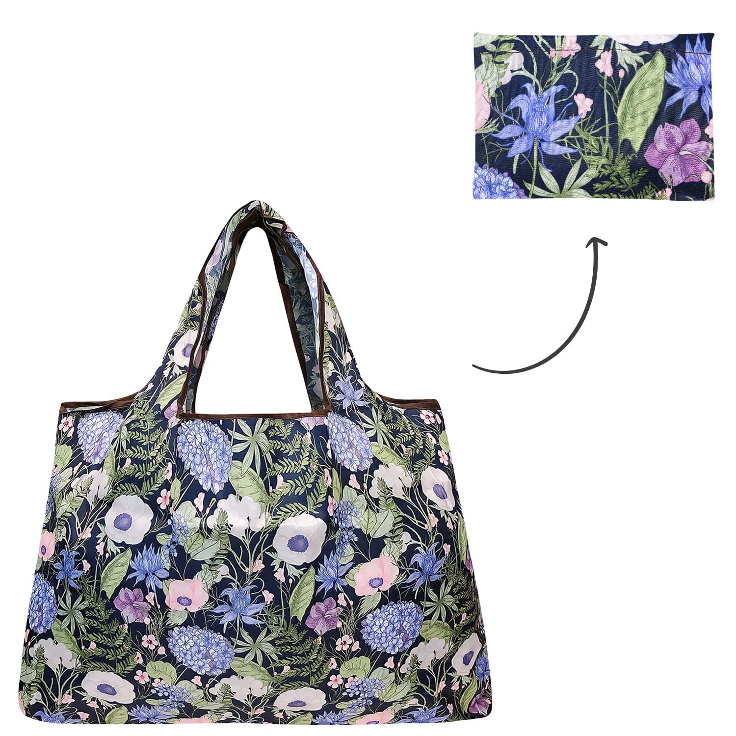 allydrew Large Foldable Tote Nylon Reusable Grocery Bag, Lavender Bouquet