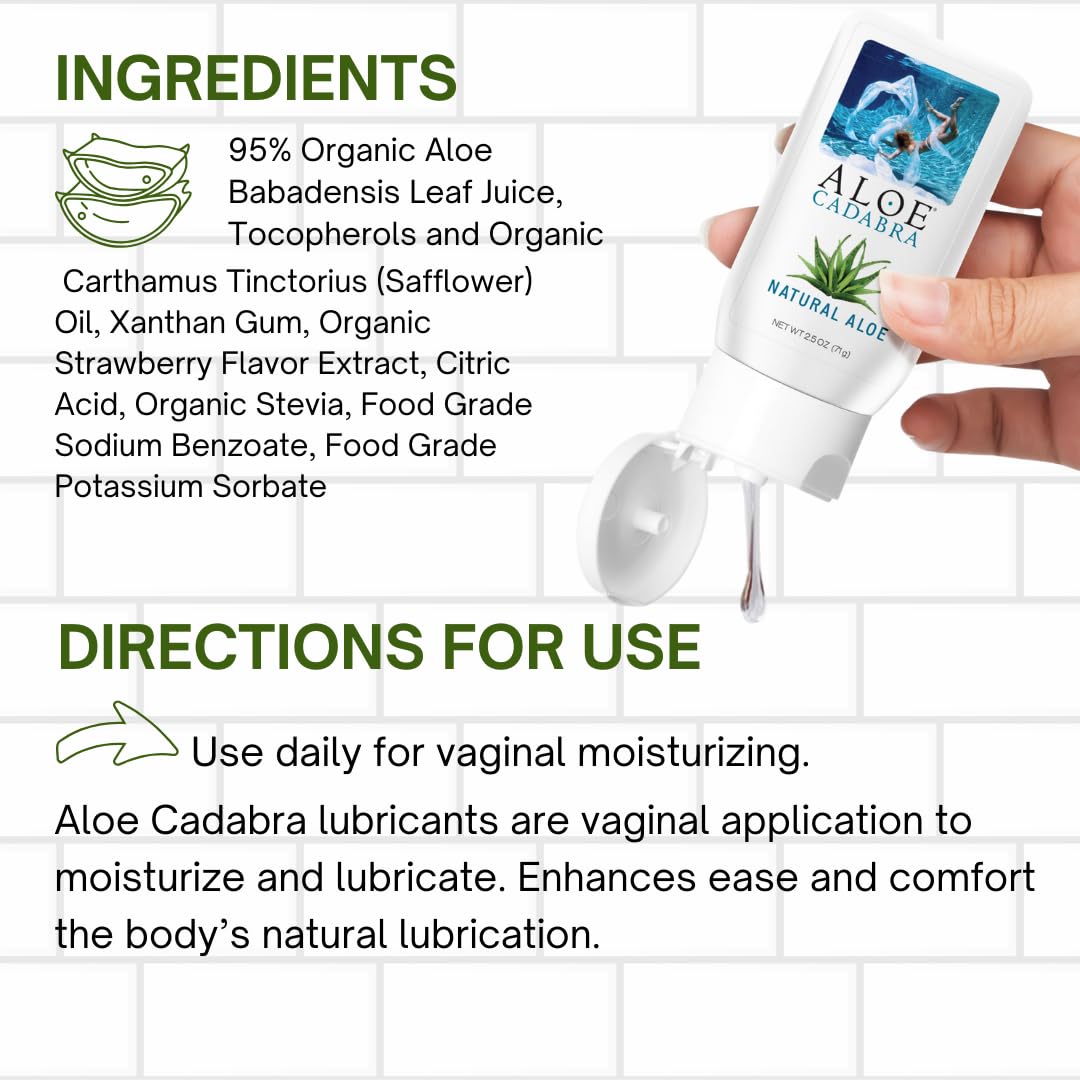 Aloe Cadabra vaginal moisturizer, natural aloe, pH-balanced, water-based & 95% aloe vera, reduce dryness, discomfort, versatile uses (2.5 fl oz, 1 pack)