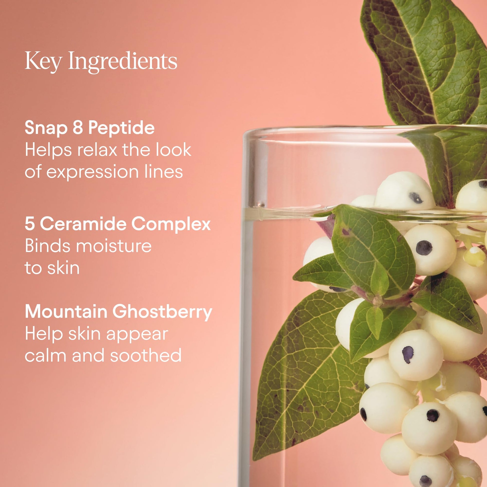 - KEY INGREDIENTS: Snap 8 Peptide: A combination of 8 peptides that helps relax the look of expression lines. Ghostberry & Tasmanian Pepper: Help skin appear soothed and calm against redness and irritation. 5 Ceramide Complex: Helps bind moisture to skin and strengthen skin’s protective barrier.