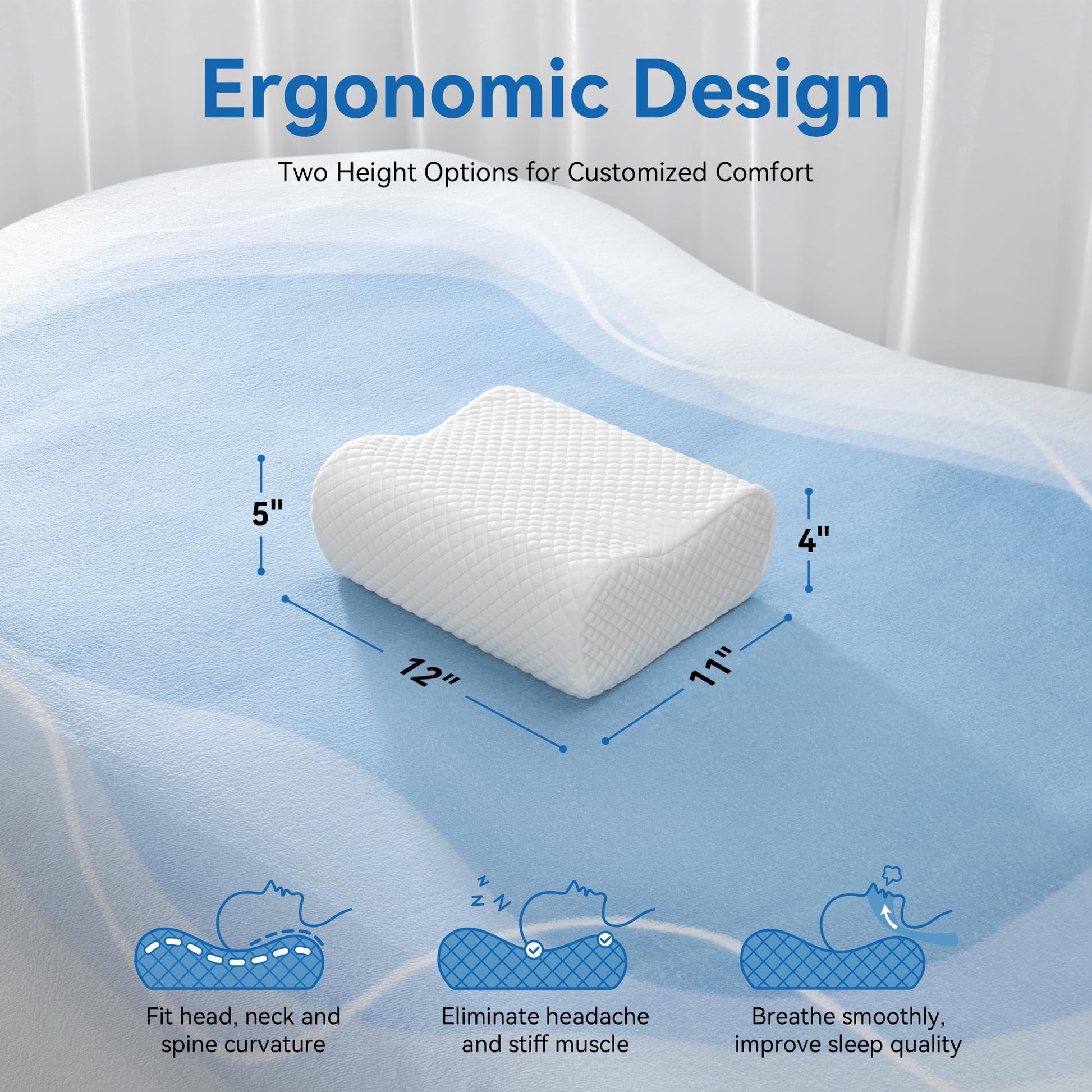 - 【Ergonomic Design】This pillow is designed for various sleep positions like side sleep, supine sleep and back sleep because its curve fit supports your head, neck and shoulder perfectly.