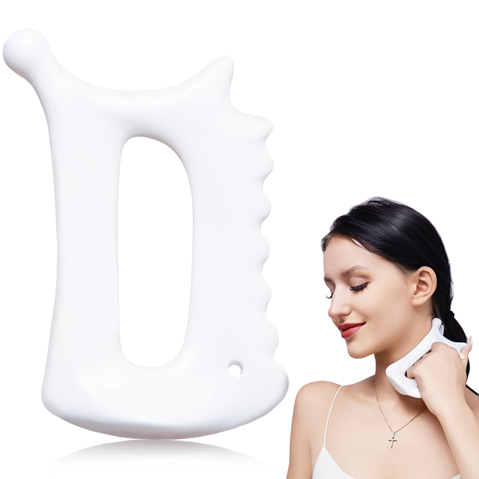- 【Ergo Grip Design】: This guasha tool is precision Pain Assassin,Curved edges lock into palms to hit unreachable back/neck knots. Toothed head digs into fascia (bye, cellulite!) while rounded contours sculpt cheekbones—no massage pro needed!