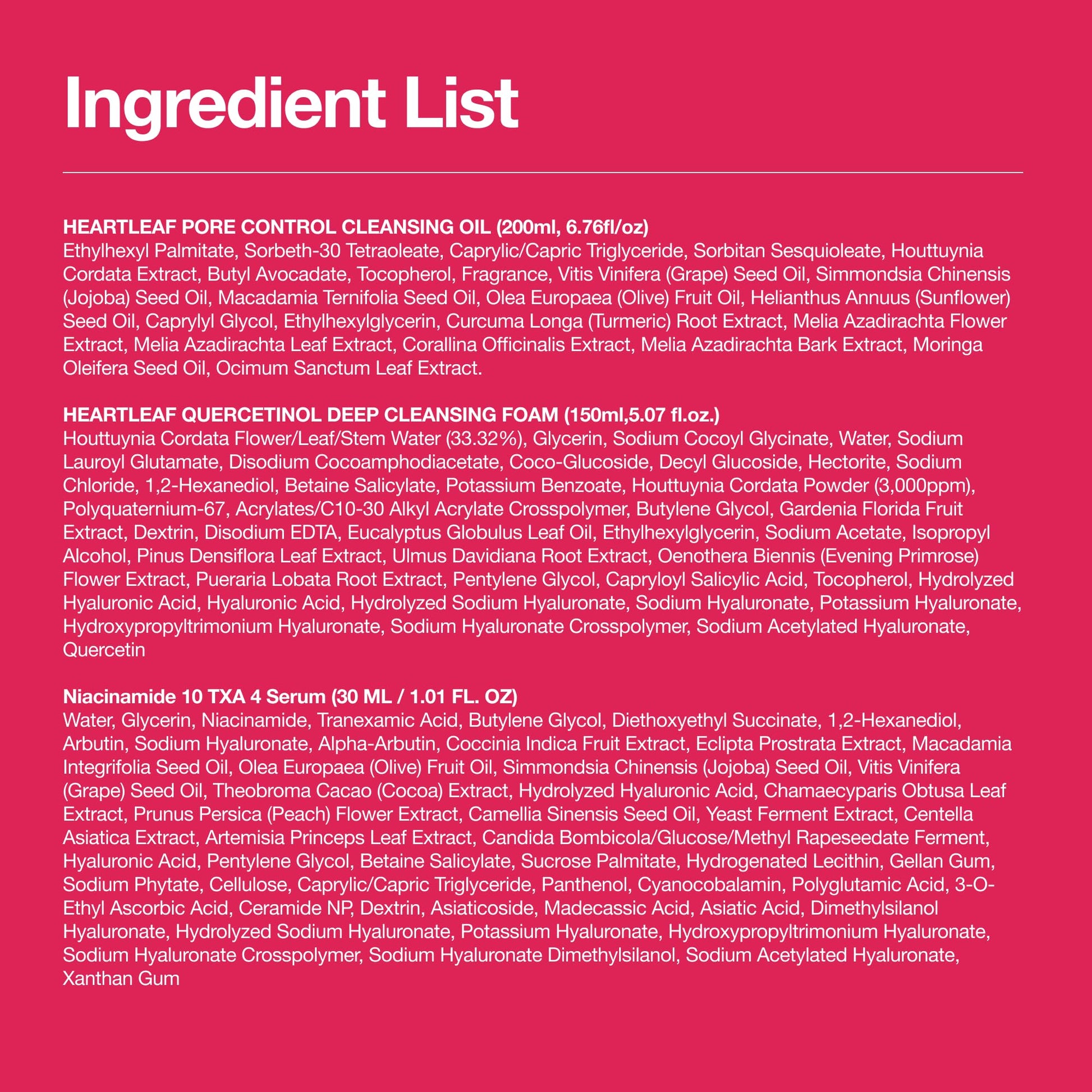 - [STEP 3: Viral TXA SERUM] A daily serum designed to enhance skin clarity and balance with three active ingredients—Niacinamide, TXA, and Arbutin. Naturally pigmented with Vitamin B for a radiant, even complexion.