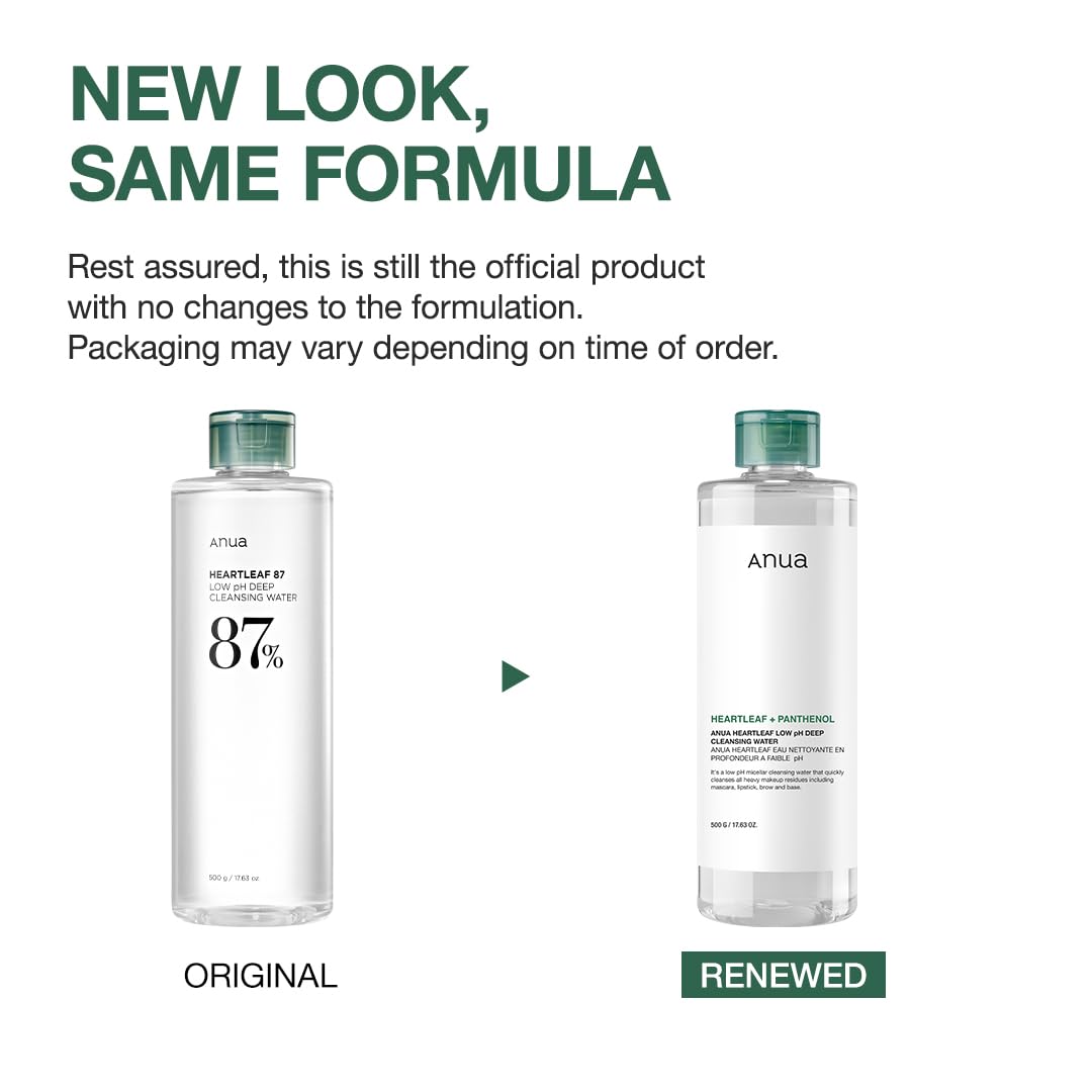 ANUA Heartleaf Low pH Deep Cleansing Water, Micella Water, Panthenol, Squalane, Makeup Remover for Sensitive Skin, Korean Skin Care (500g, 17.63 oz.)