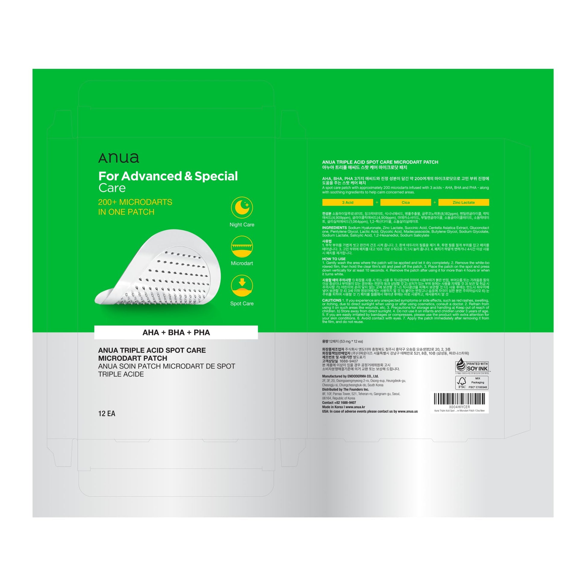Anua Triple Acid Spot Care Microdart Patch, Deep, Early Stage Spot, 200+ Microdarts with AHA + BHA + PHA, Centella, Hydrocolloid Patch for Overnight, Non-Comedogenic, Korean Skin Care (12ea)