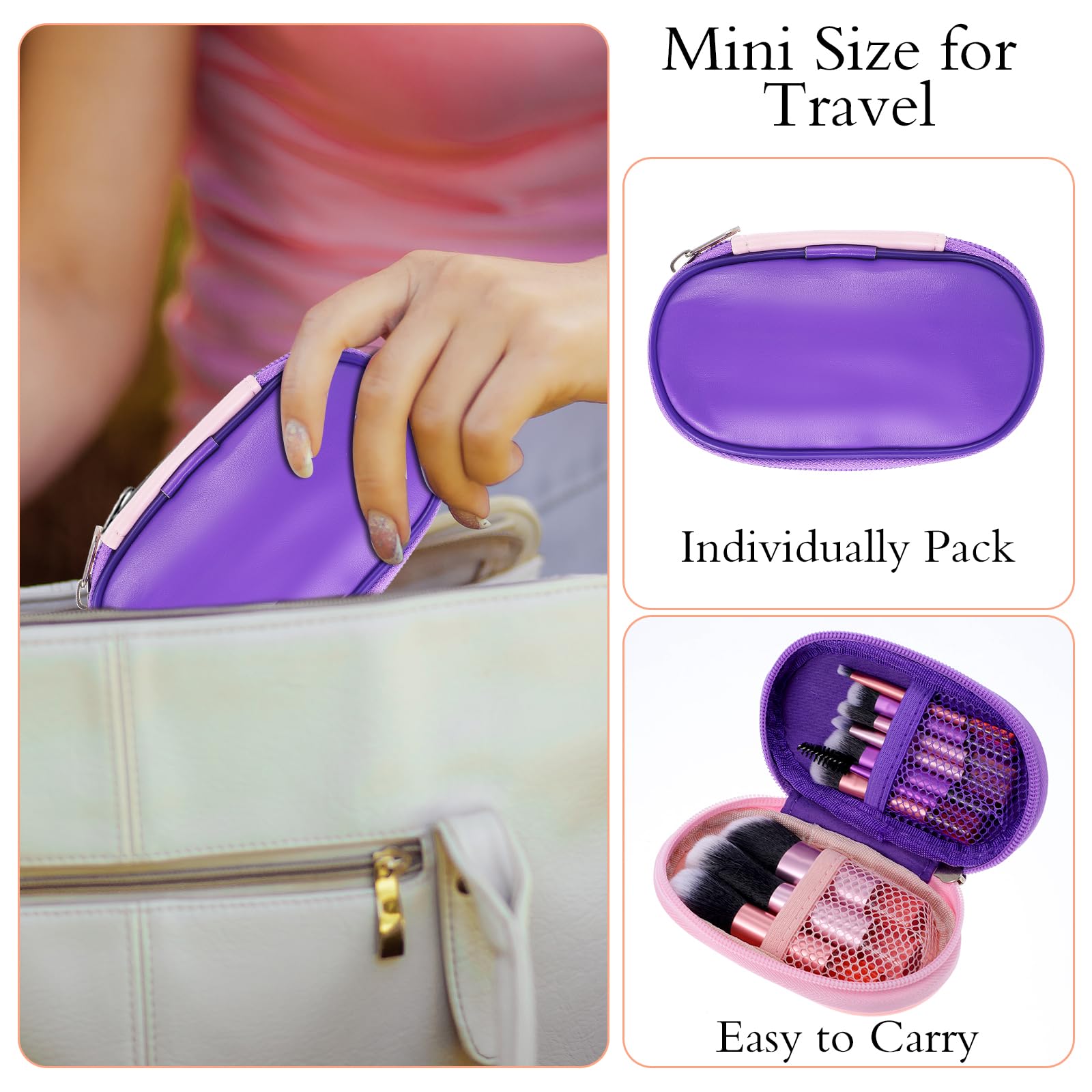 - 【Portable & Easy-Taken】Our travel makeup brush set comes with a carrying case that can protect your brushes well. Brush bag dimensions are 13.5 x 7.7cm/5.31x3.03 inches, perfect for travel or daily use. Designed for travel, outdoor use, or daily makeup, the set includes basic makeup brushes so that you can complete your makeup process anywhere.