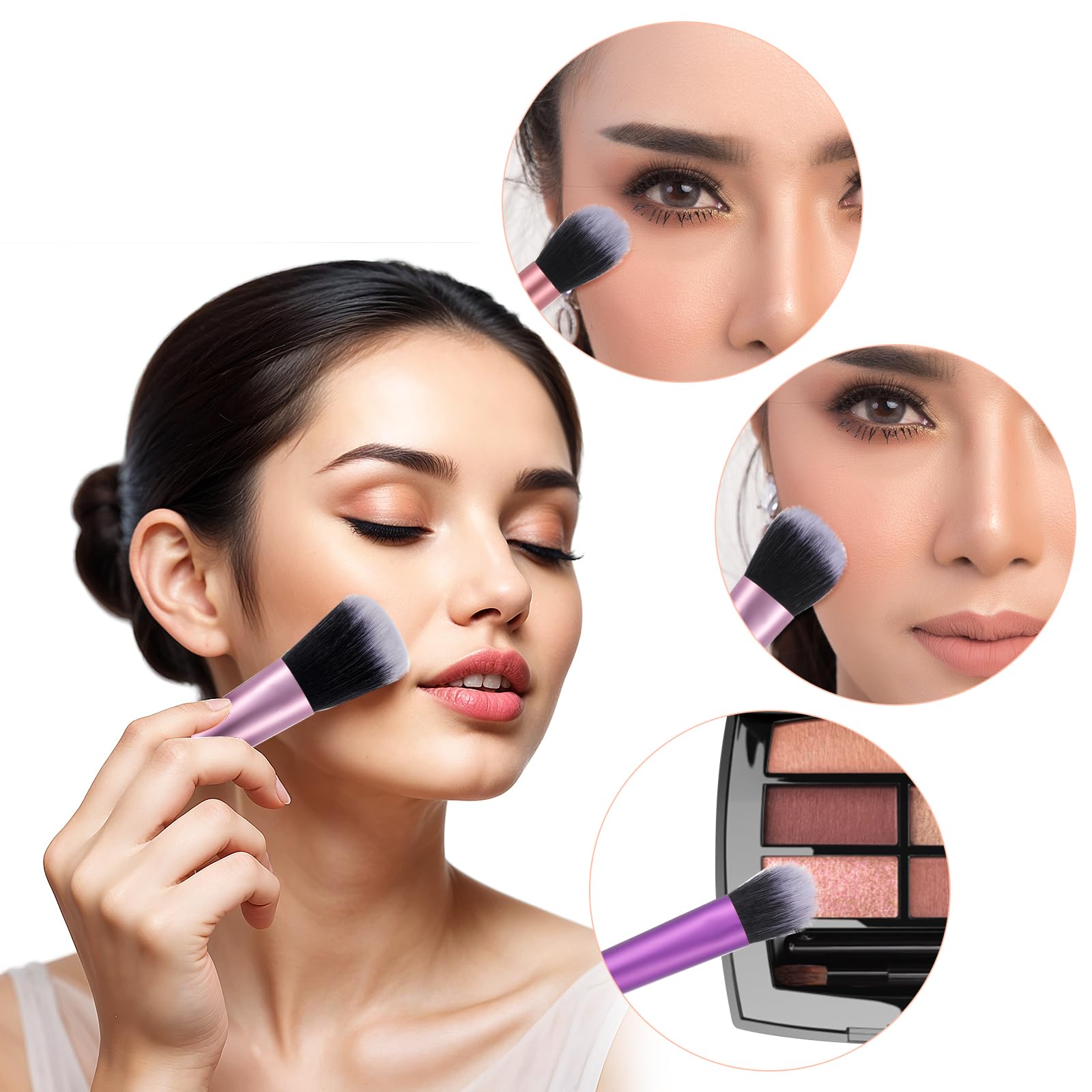 High-quality soft synthetic hair, bristles are dense and thick and can give you perfect and flawless makeup. No harm or irritation to the skin, and no shedding.