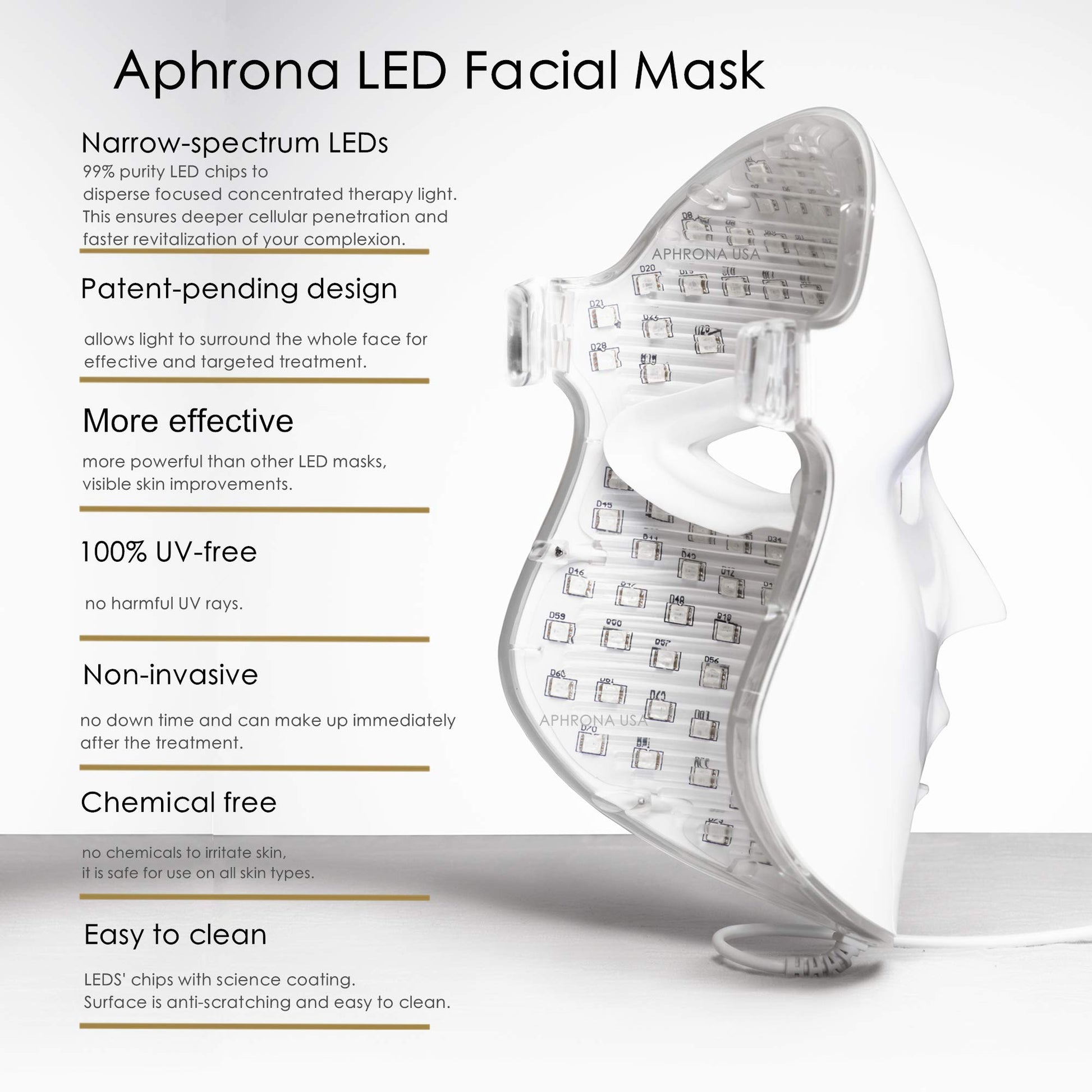 - FDA CLEARED – Unlike many beauty products that promise results without proof, Aphrona’s LED face mask is FDA 510(k) cleared as a Class II medical device. Our patented LED technology is backed by science, providing visible improvements in skin texture, tone, and clarity—so you can invest in beauty that actually works.