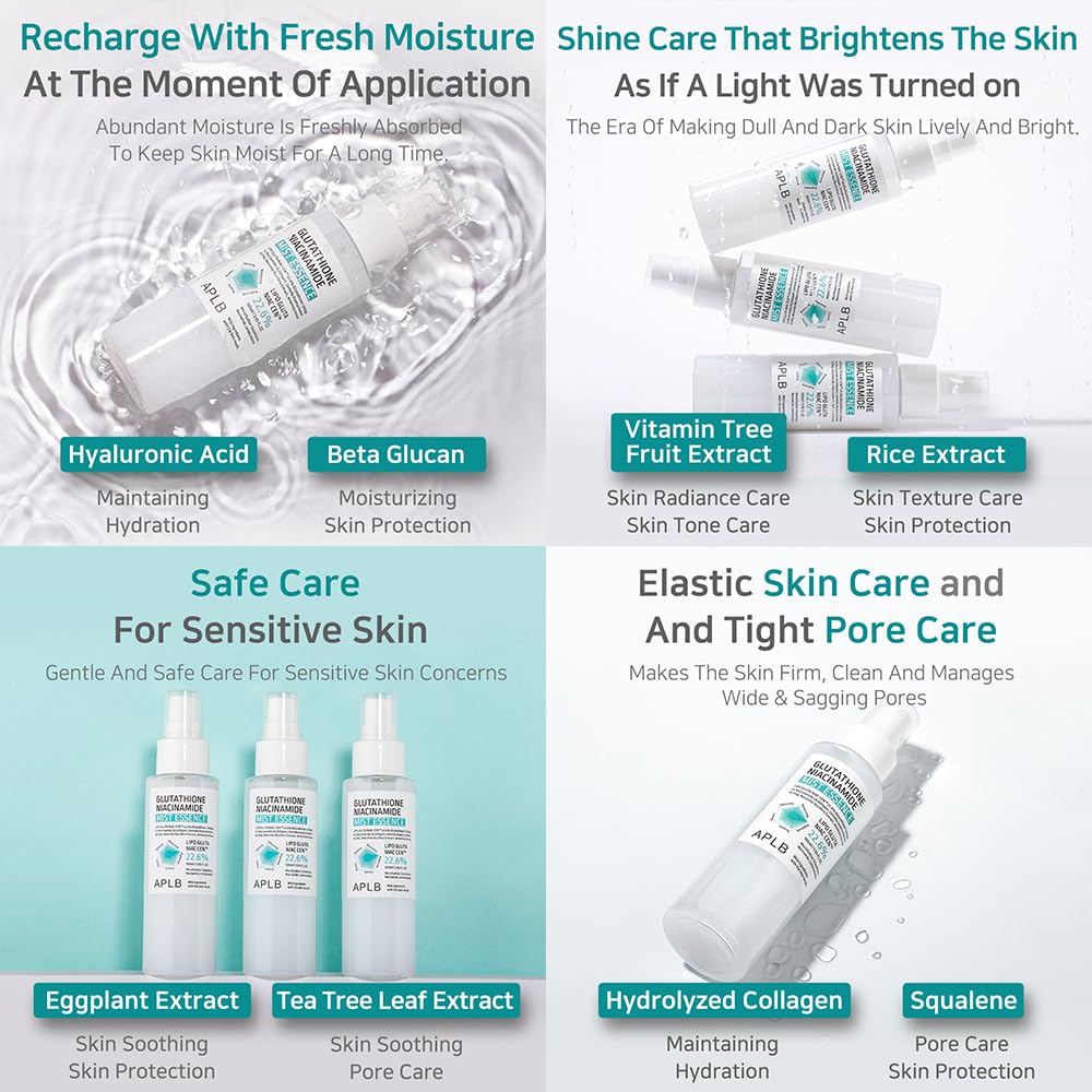 APLB Glutathione Niacinamide Mist Essence | LIPO GLUTA NIAC CEN™ 22.6% 3.55 FL.OZ/Korean Skincare, Replenishing moisture, Revitalize for gentle and improve skin texture through Niacinamide