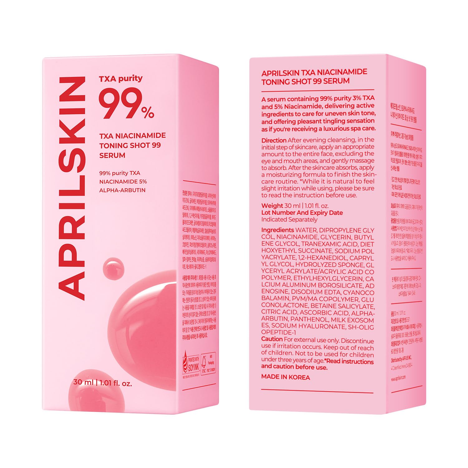 APRILSKIN TXA Niacinamide Toning Shot 99 Spicule Facial Serum|Skin Booster Serum for Brightening and Pore Care|99% High-Purity Tranexamic Acid 3% + Niacinamide 5%|Korean Skin Care|1.01 fl. oz.