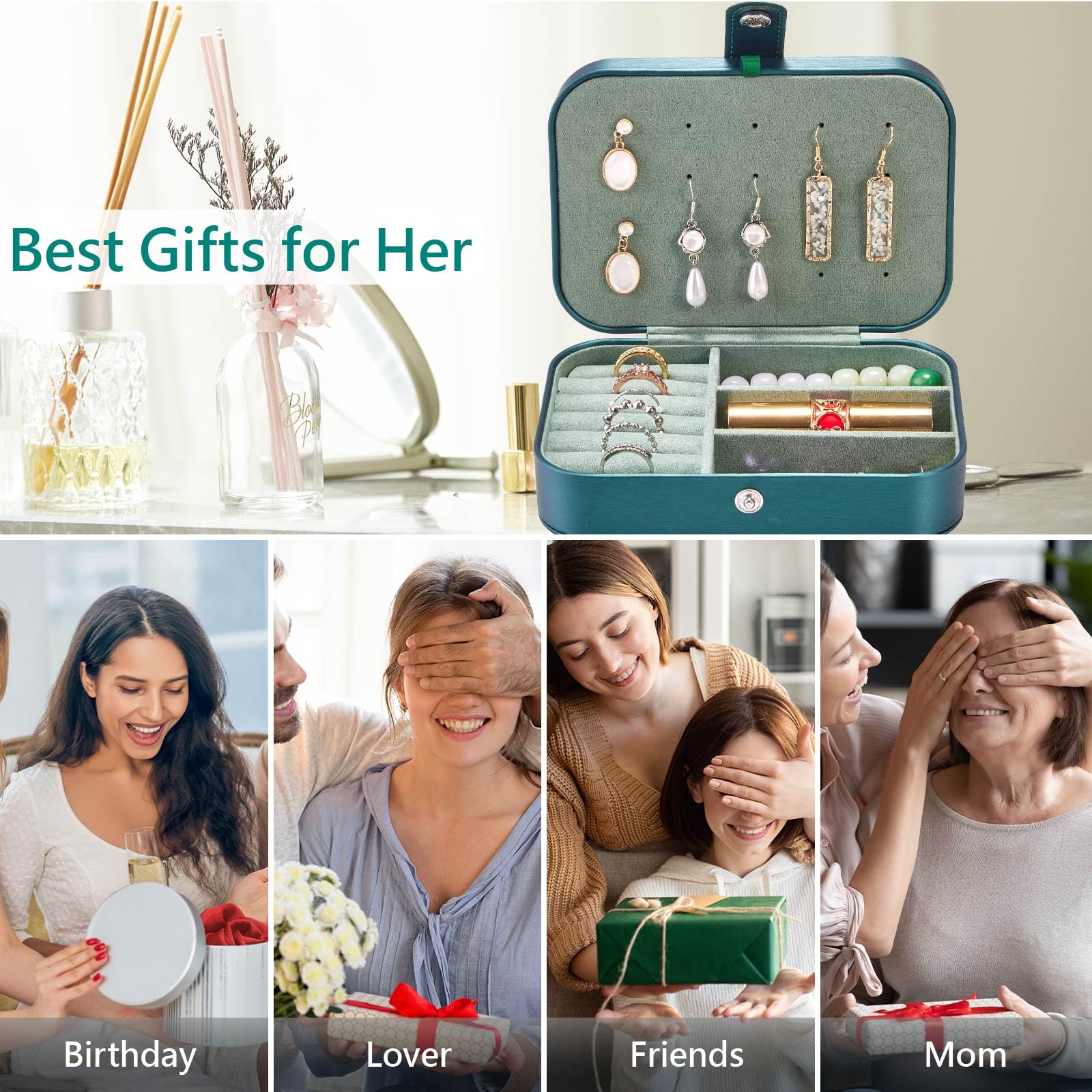 - PERFECT CHRISTMAS GIFT:The travel jewelry organizer's velvet lined interior provide a soft touch, protecting the jewelry from scratches. Delicate single thread sewing and sturdy box body enhance pressure resistance. This jewelry box features with compact design, sits beautifully on your dresser, bathroom counter, to make your room look more neatly,is college essential, the best gift for Valentine's Day,Birthday,Mother’s day,Christmas,which make everyone who receives it feel your thoughtfulness.
