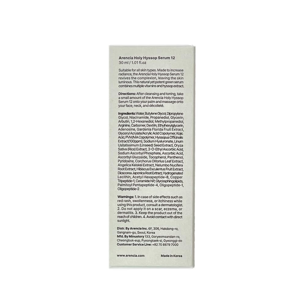 Arencia Hyssop Glow Serum, 10% Niacinamide, 12% Vitamin A,C,E - Hydrating, Moisturizing, Anti-Aging Serum for Korean Glass Skin