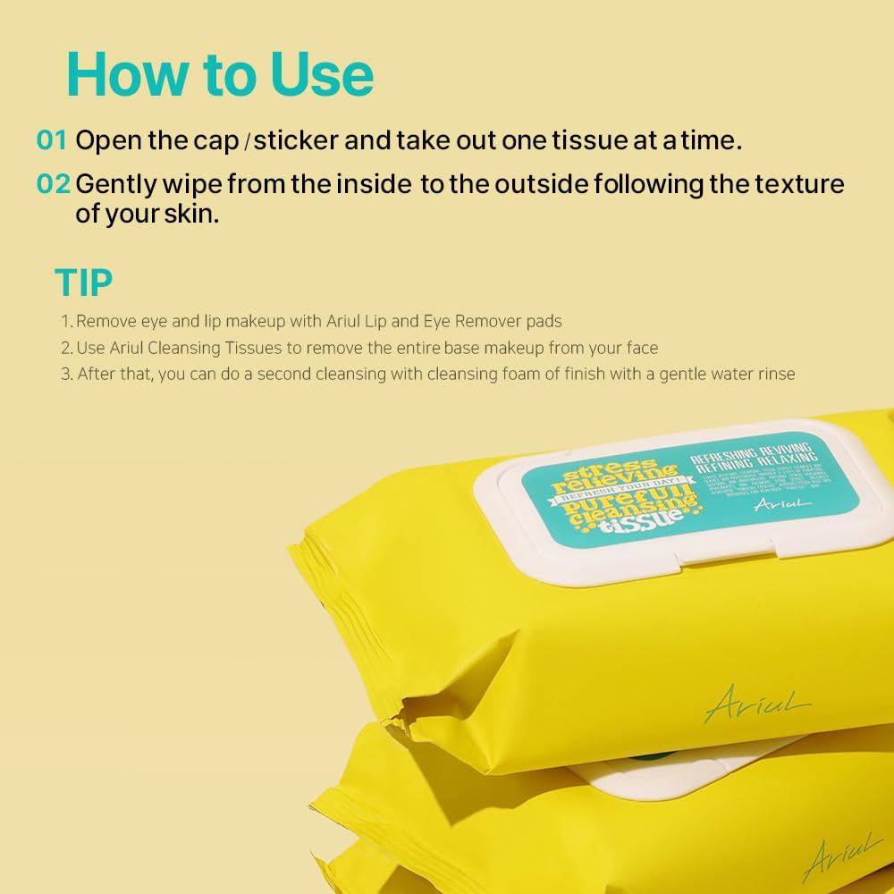 Ariul Stress Relieving Purefull Cleansing Tissue – Gentle & Hydrating Makeup Remover Wipes, Korean Skin Care with Natural Ingredients, 80 Counts × 2 Packs