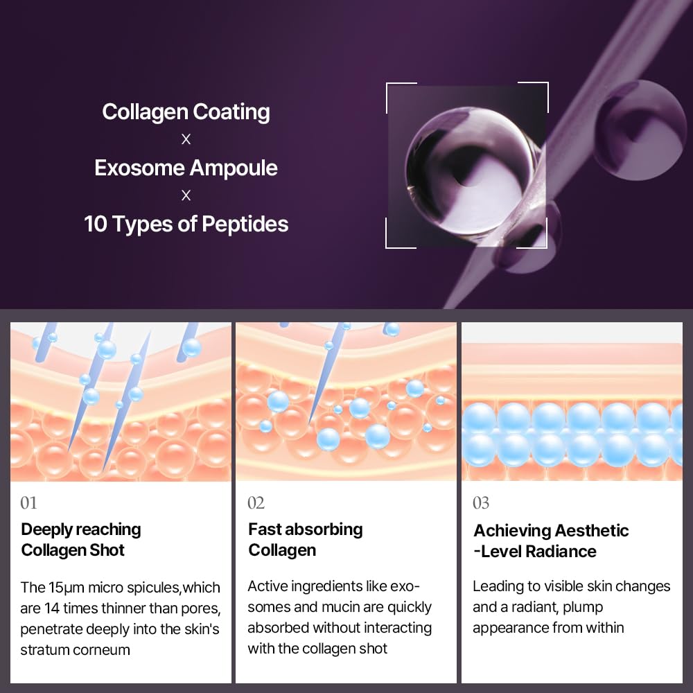 - 3X Collagen Micro Shot Spicule – Advanced ampoule technology that helps deliver active ingredients deeply for elasticity and plump skin.