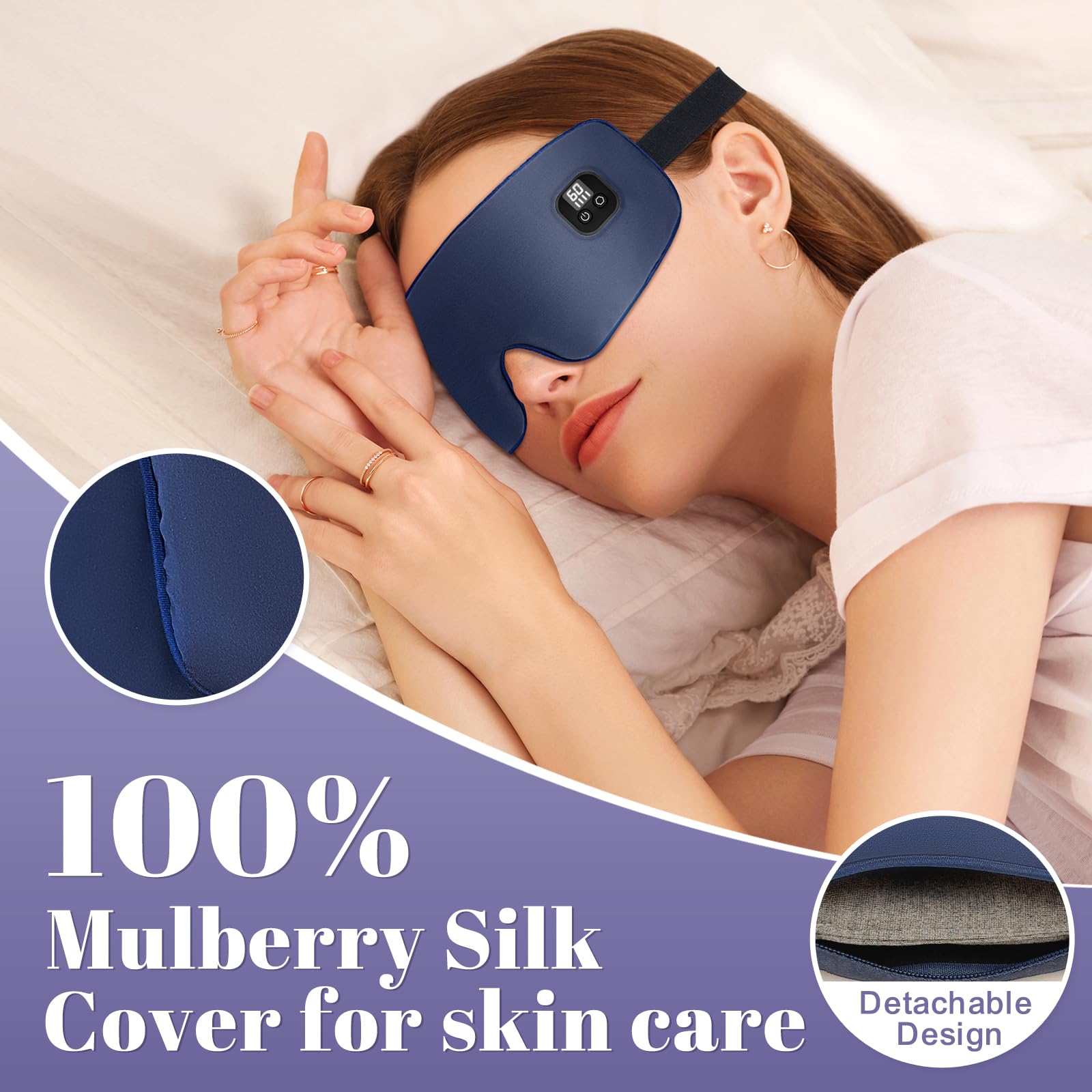 - 【100% Silk】Designed with premium silk and filled with natural cotton, our heated eye mask provides a gentle and cozy experience. The silk's softness cares your skin, delivering a calming sensation for ultimate relaxation.
