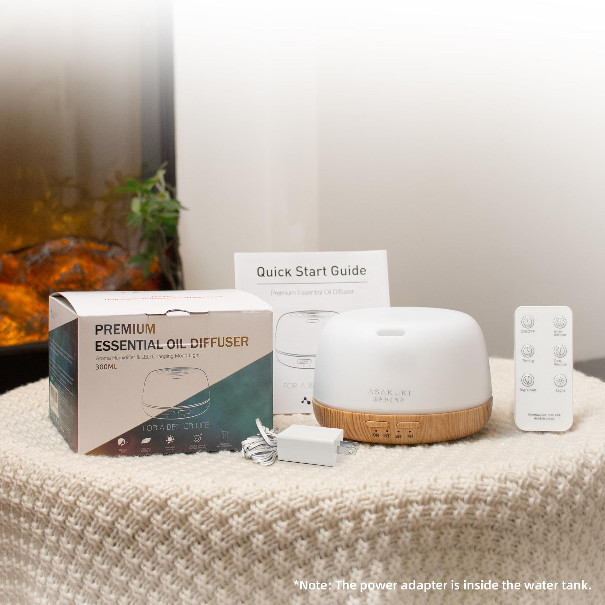 - Small, Compact But Powerful: ASAKUKI aromatherapy diffuser combines the benefits of aromatherapy and humidification in one compact device. Its classic and adorable design with 7-color light options makes it perfect for our bedroom use, with small 5.08"L x 5.08"W x 3.50"H size. The packaging includes a diffuser, USB-C cable, user manual, remote control, and a power adapter.