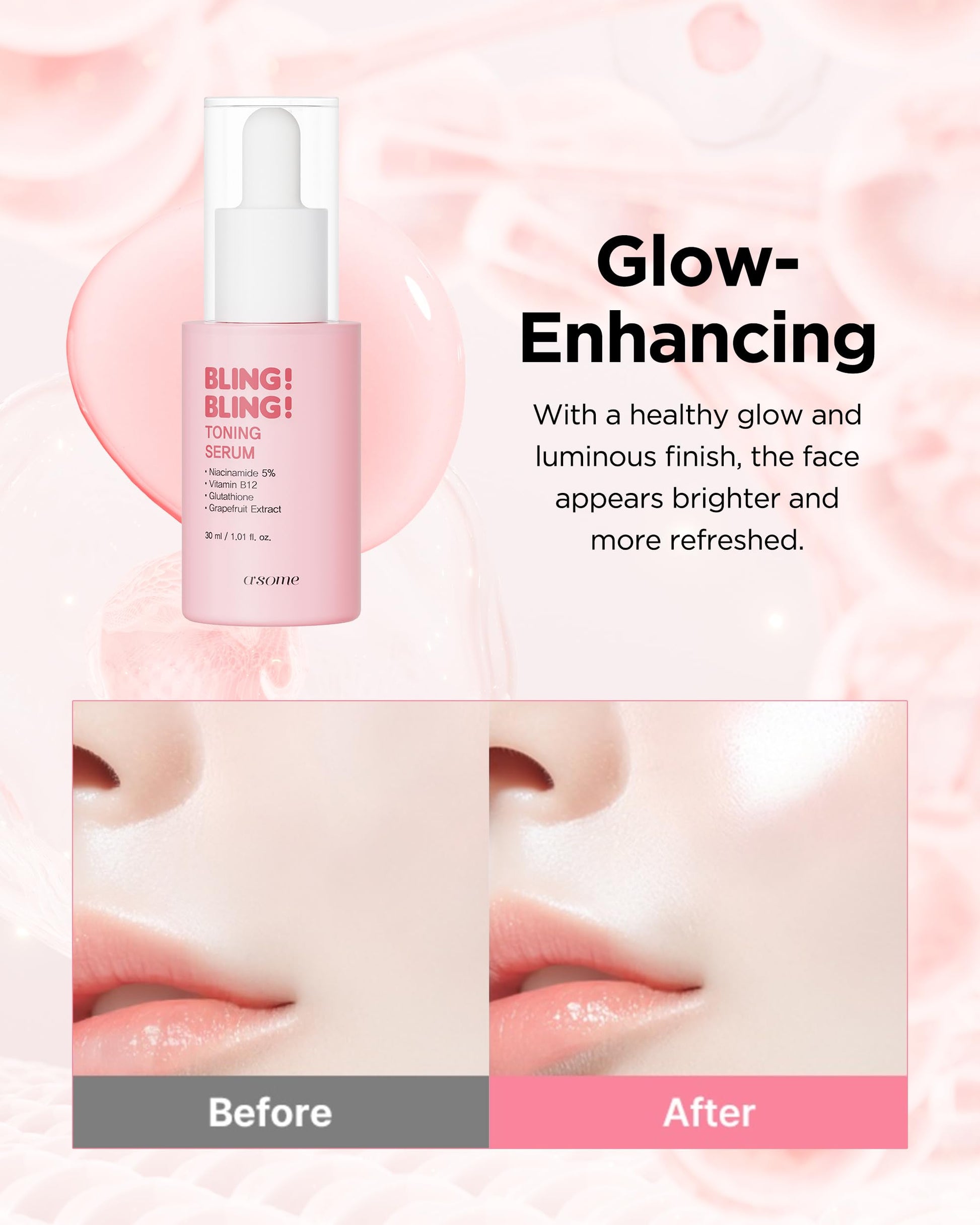 A'SOME Bling Bling Toning Serum Korean Advanced Facial Serum with 5% Niacinamide for Radiant Complexion, Vegan Gel Formula with Hyaluronic Acid & 10 Vitamins, Dermatologist Tested, 1.01 fl.oz.