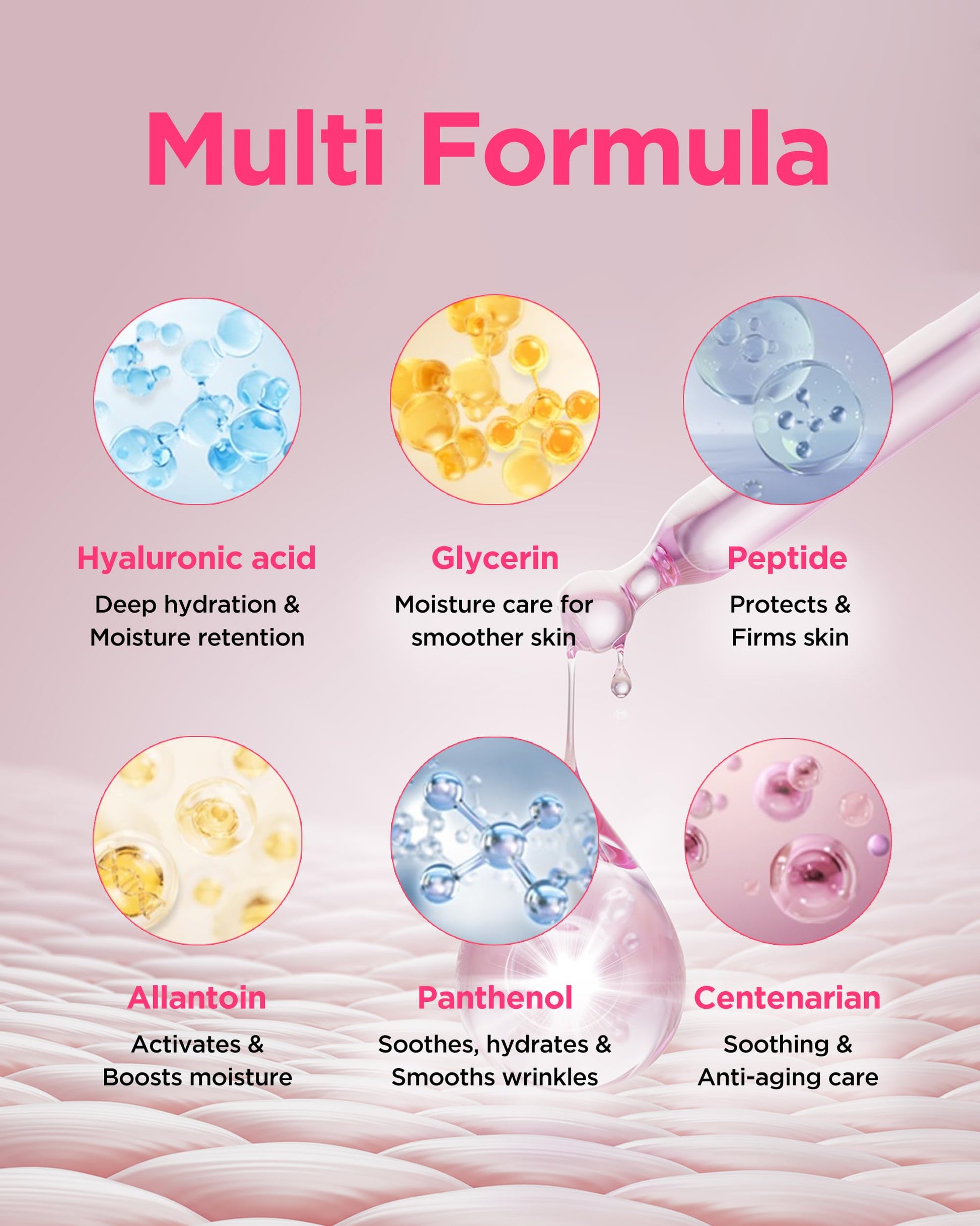 - ADVANCED HYDRATION TECHNOLOGY: Features multiple forms of Hyaluronic Acid, Peptides, Allantoin, and Panthenol for skin elasticity and wrinkle improvement. This gel-type serum provides moisture without stickiness for comfortable all-day wear.