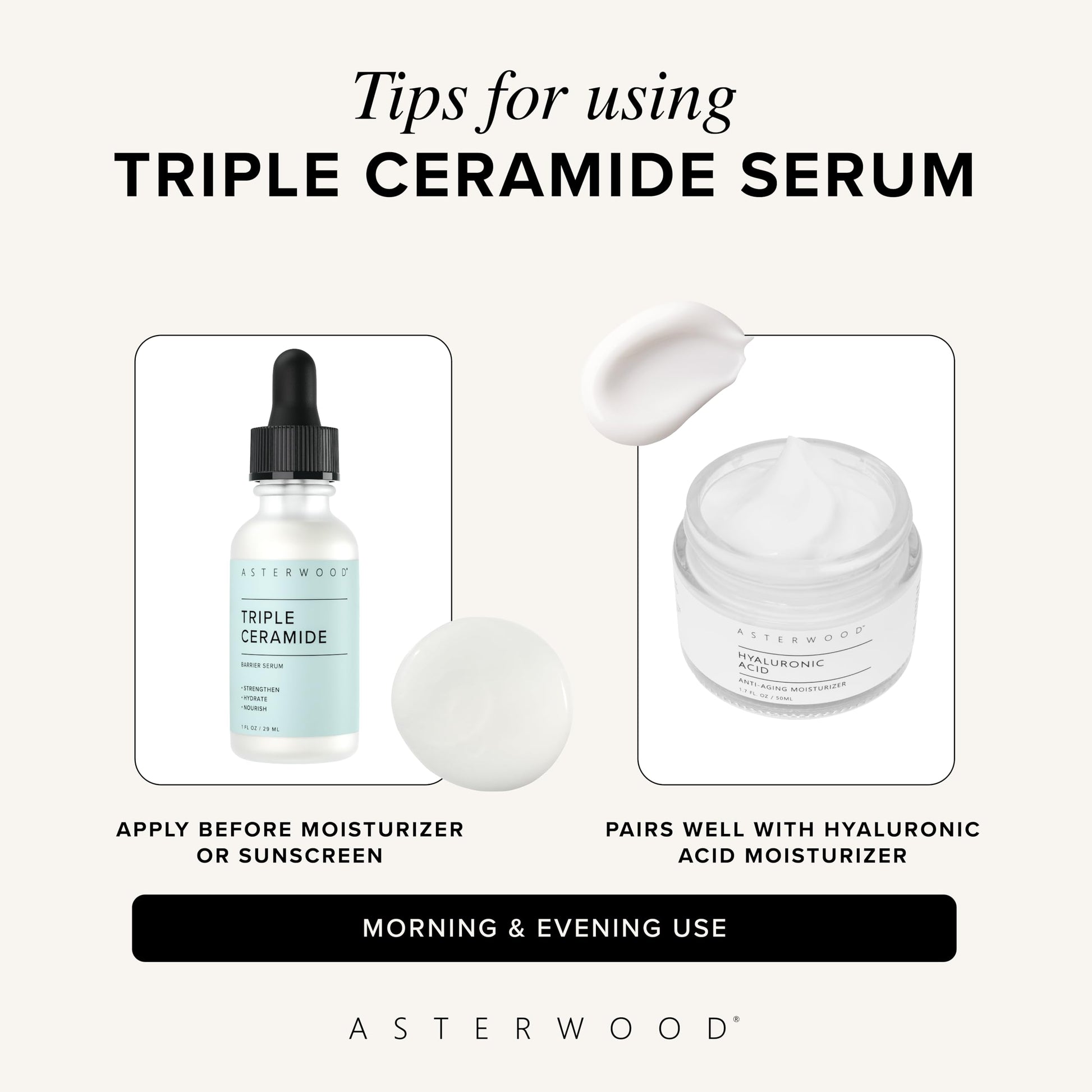 Asterwood Triple Ceramide Barrier Repair Serum - Hydrating, Calming, & Barrier-Restoring Skin Facial Serum - with Ceramide Complex, Squalane, Hyaluronic Acid - Fragrance-Free, Cruelty-Free - 1 Fl Oz
