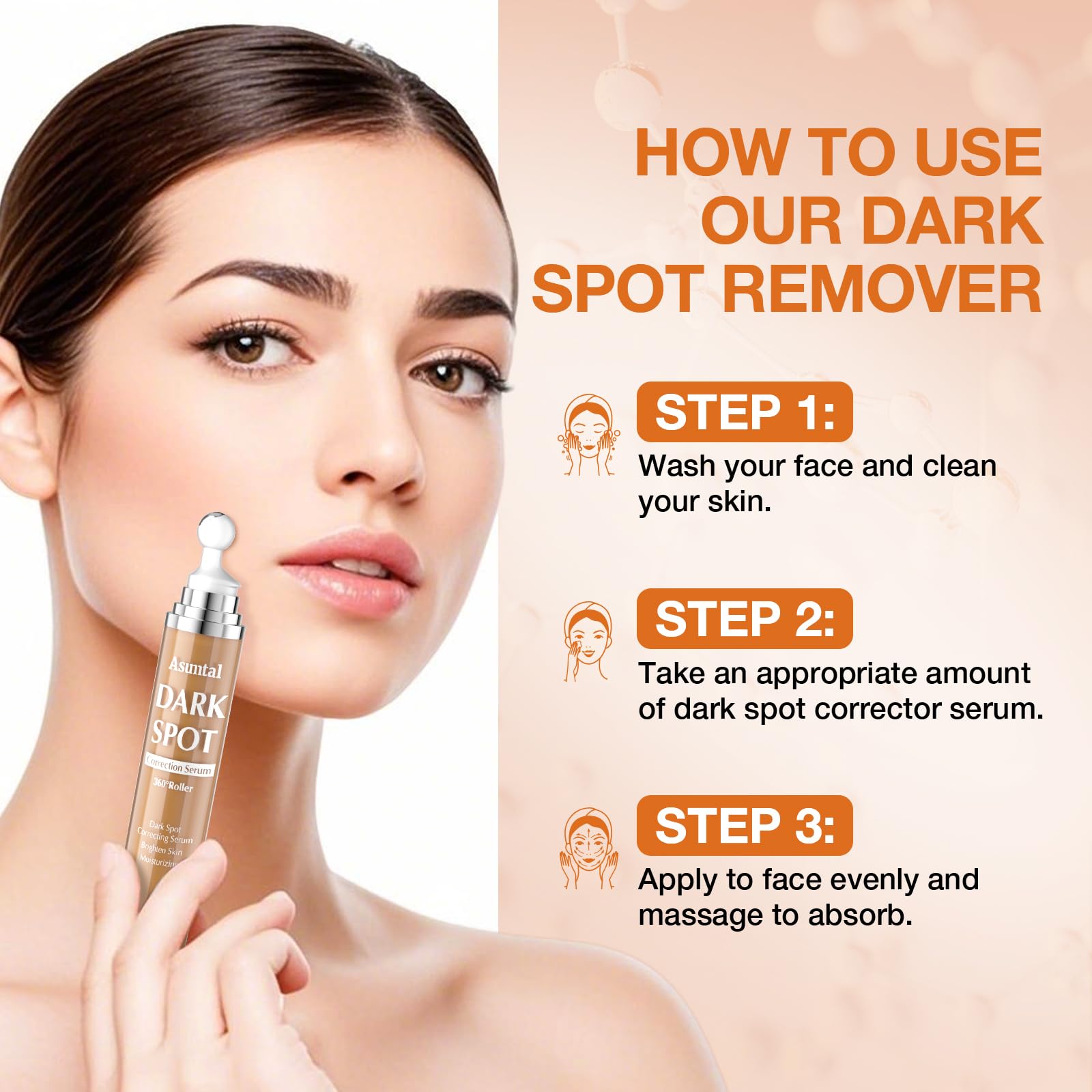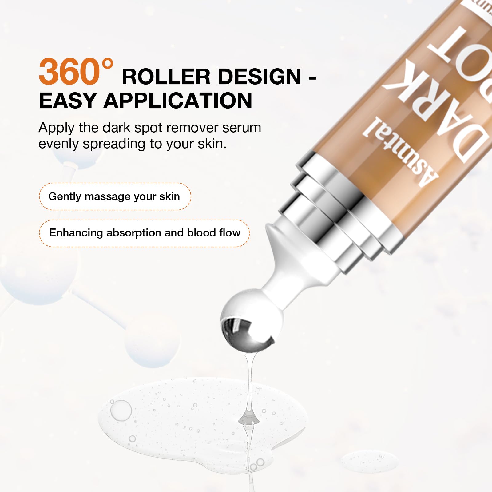 Asumtal Dark Spot Remover For Face Skin Care Serum, Age Brown Sun Freckles Spot Remover, Dark Spot Corrector For Face with Massage Roller (0.67 Fl Oz)